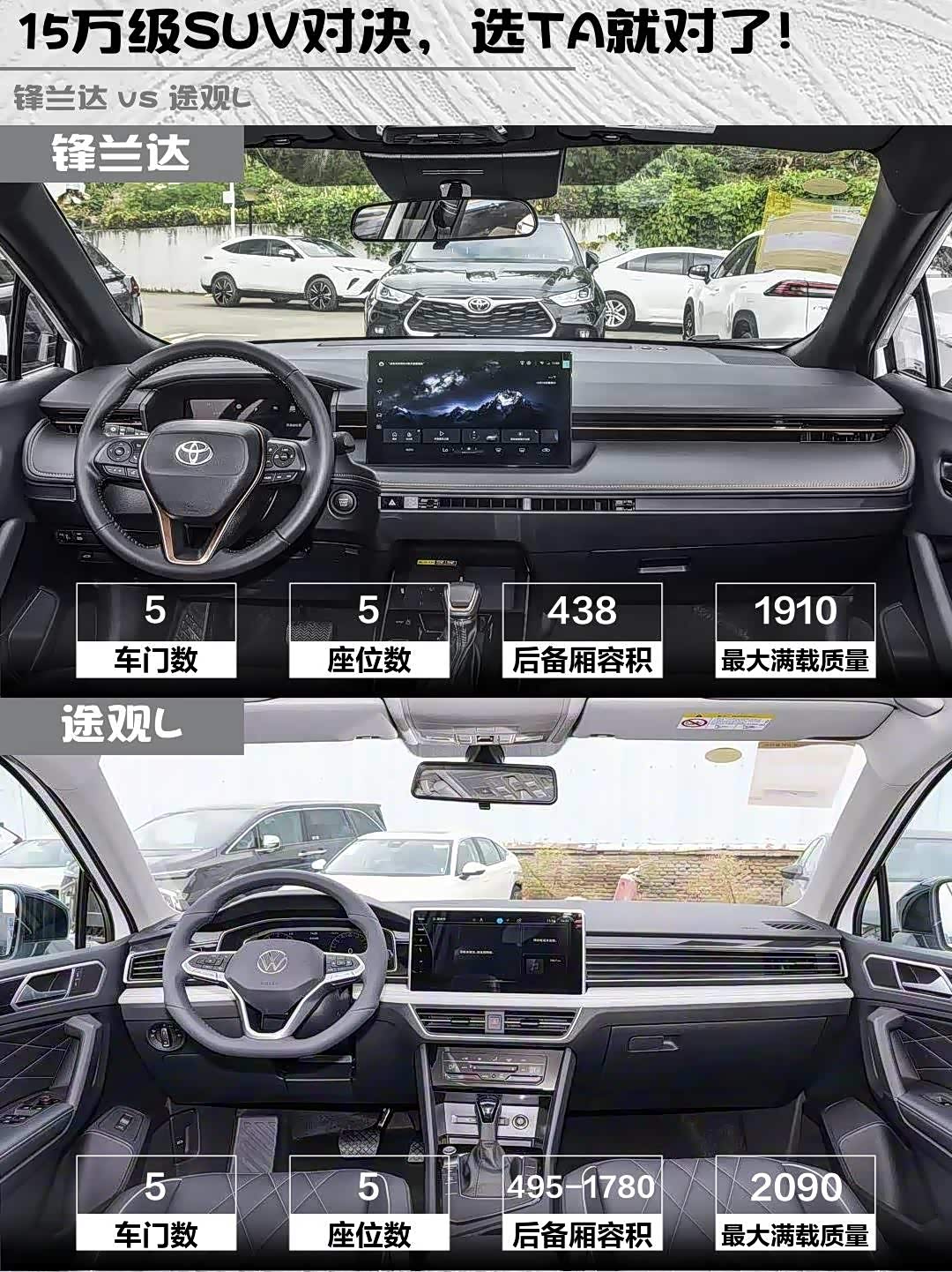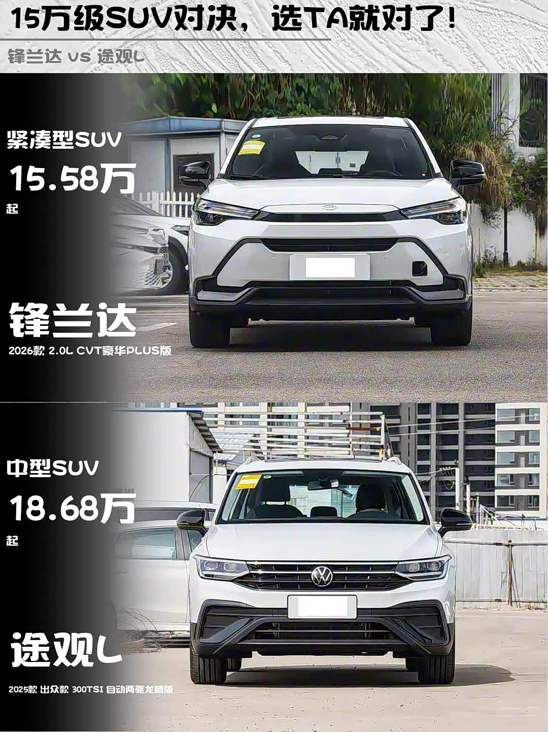 最近在选车的小伙伴看过来!今天给大家深度对比两款热门SUV—— 锋兰达(参数|询价)2026款 2.0L CVT豪华PLUS版和途观L 2025款出众款300TSI自动两驱龙腾版,看完这篇你就知道哪款更适合你!🔥