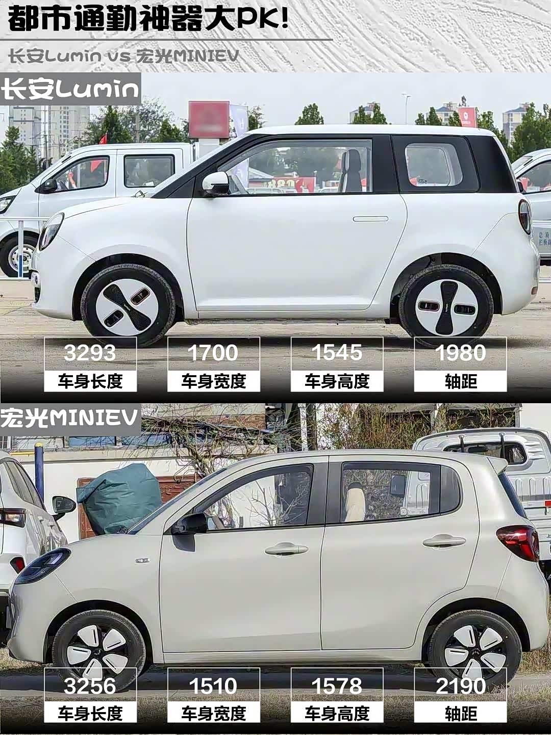 Lumin车宽多出19cm!前排1米8大长腿不憋屈,后排勉强能塞成年人。宏光MINIEV四门设计进出方便,但后备箱放个充电器就满了...不过宏光后排能装8箱牛奶的操作也是绝了🥛 要载物选宏光,要舒适选Lumin准没错!
