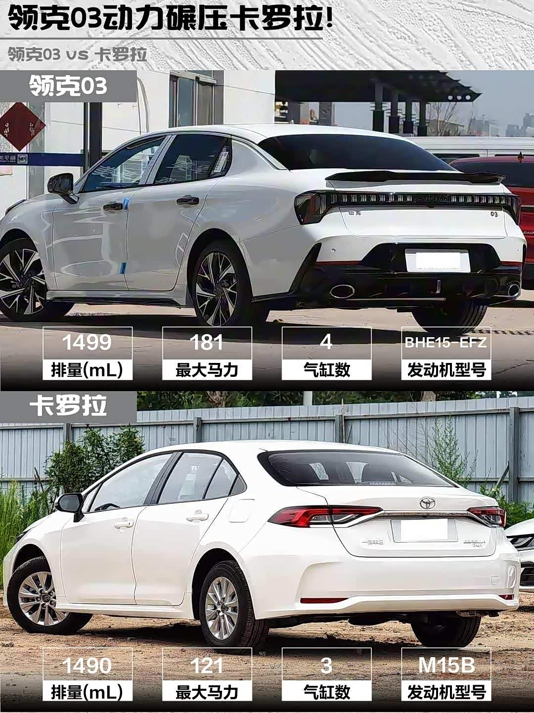 领克03的1.5T发动机181马力+290N·m扭矩,运动模式一脚油门下去推背感直接顶到脊椎!🌪️实测高速超车降档补油时引擎声浪简直让人起鸡皮疙瘩。卡罗拉1.5L三缸机121马力+148N·m扭矩,CVT变速箱平顺得像德芙巧克力,但急加速时发动机干吼不走的样子像极了晨跑时的我😅