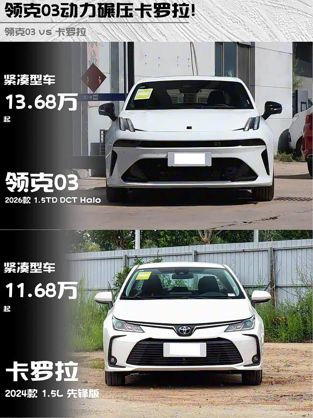 最近后台好多兄弟问我:15万预算选运动轿跑还是家用神车?今天直接拉出2026款 领克03(参数|询价) 1.5TD DCT Halo和2024款卡罗拉1.5L先锋版硬核PK!看完这篇你绝对不纠结🔥