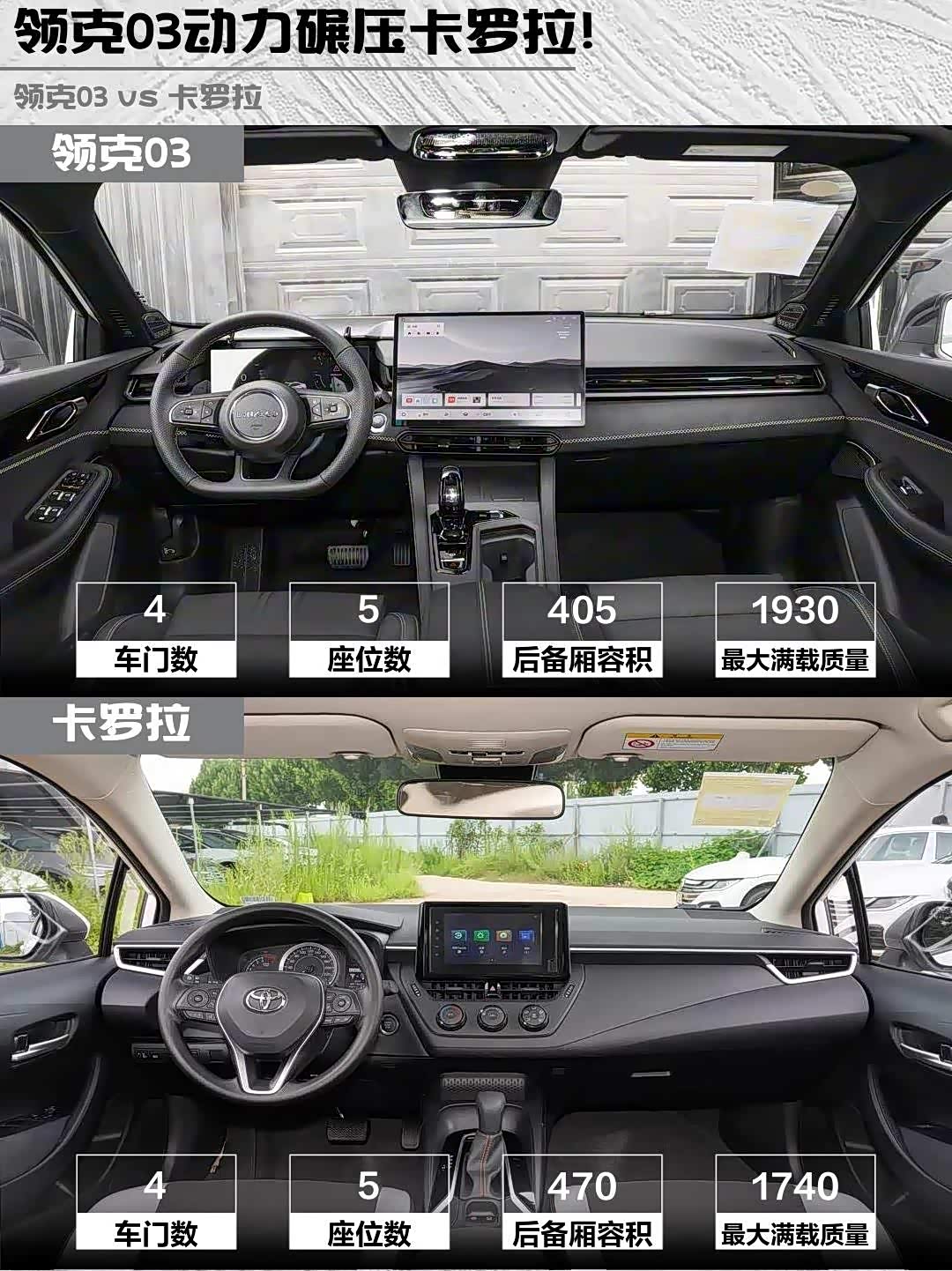 领克03后排头部空间堪称"175cm以下专属",后备箱开口小得像是给猫设计的🐱但放倒座椅能躺平看星星!卡罗拉后排地台隆起能煎鸡蛋,不过470L后备箱装婴儿车+行李箱无压力