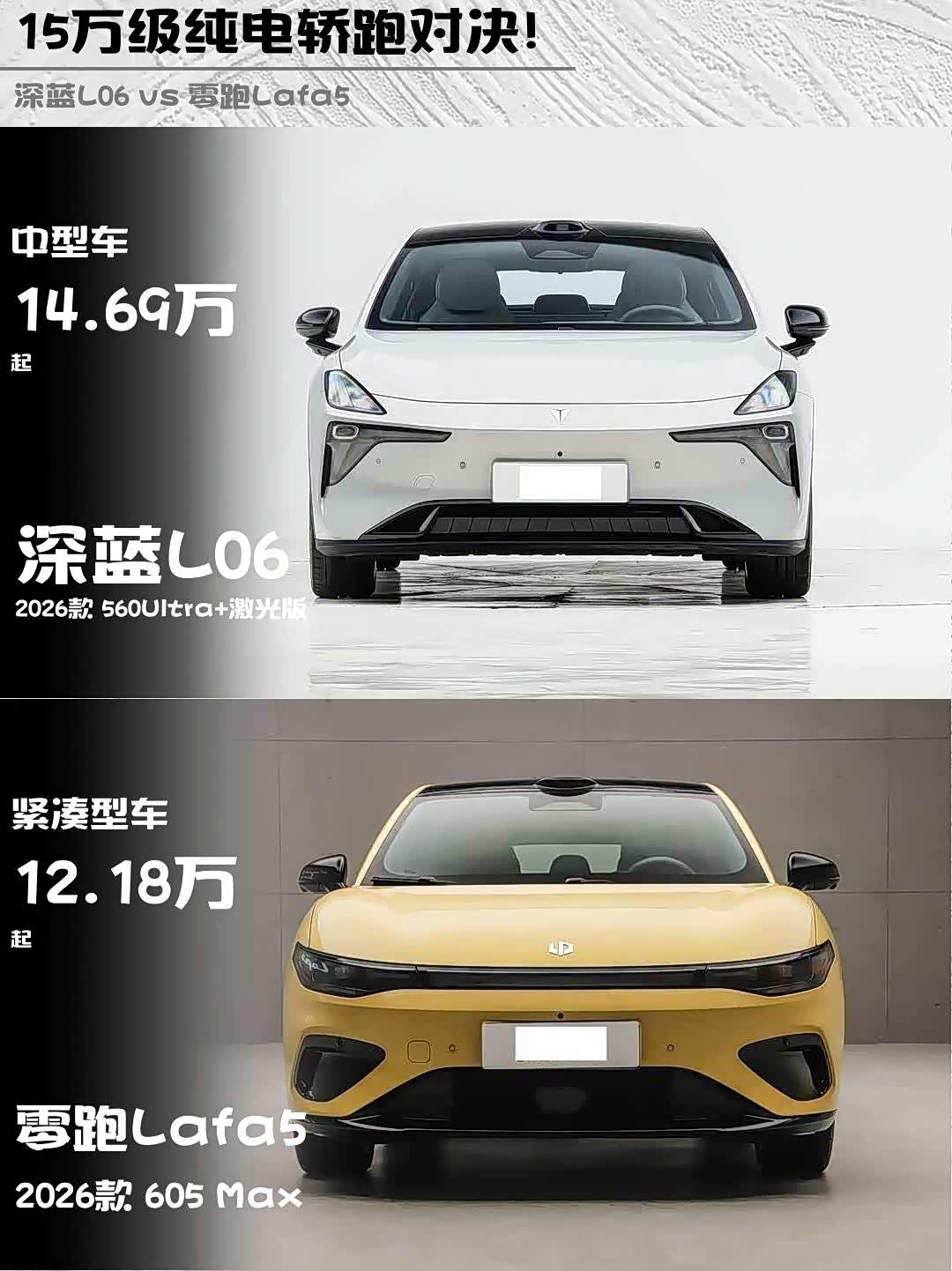 最近深度试驾了两款15万级纯电轿跑——深蓝L06 2026款 560Ultra+激光版和 零跑Lafa5(参数|询价) 2026款 605 Max,发现这两台车完全走的是不同路线!🔥