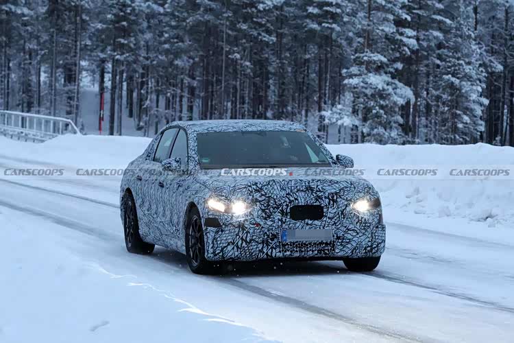 在雪地中进行测试的E级纯电版被伪装得很严实,但预计会采用品牌全新的“标志性格栅”。这个巨大的镀铬格栅最近首次出现在GLC EV上,未来也将在C级EV上看到。如果它的尺寸还不足以吸引眼球,那么还有带有942个灯光的发光版本以及闪闪发光的星标。