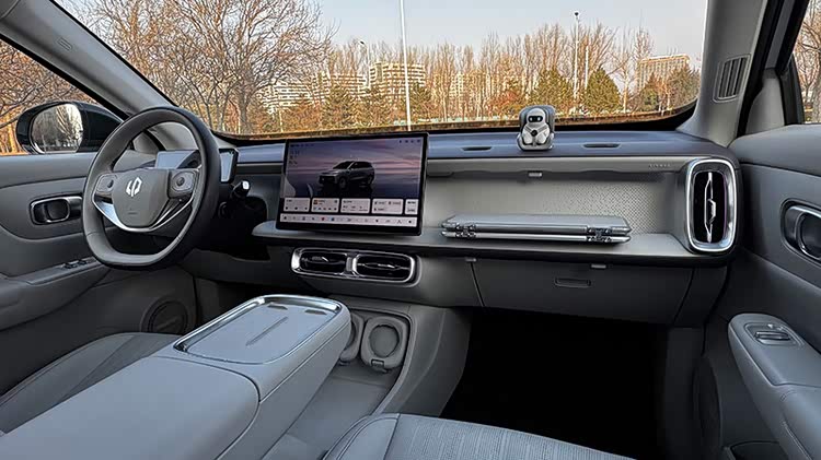 坐进车里,第一感觉是空间利用率很高。别看是A级SUV尺寸,但后排腿部和头部空间都很充裕,得房率这个概念确实能感受到。前排最有趣的是副驾的“魔术拓展坞”,支持各种配件安装,能变成化妆台、办公桌甚至娱乐屏,虽然我个人觉得实用性需要长期检验,但这种鼓励用户自定义的思路是好的。零跑B10的车机是高通8295芯片,流畅度没问题,语音助手识别率和响应速度都属不错,连续对话、可见即可说这些功能也会有,属于好用不卡顿的水平。
