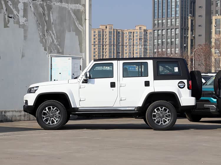 新车在外形方面沿用了上一代BJ40的设计语言,格栅采用了家族化的五孔式造型,和两侧熏黑的大灯组相连,视觉一体感比较强;前舱盖上设计有多条隆起的筋线,有着比较强的肌肉感。