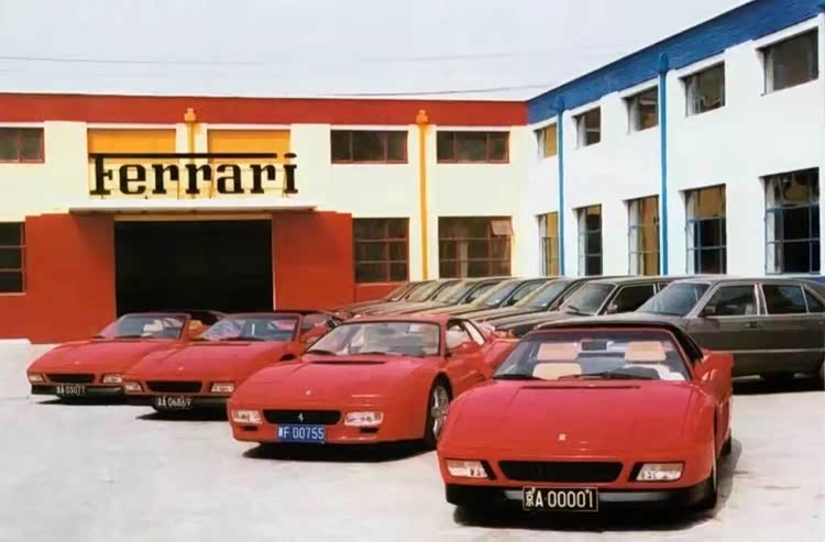 四辆法拉利一起出现在腾飞修理厂,后面还有一排奔驰S级,底盘代号为W126,当然了,最吸睛的还是前面的一排法拉利,这四辆车分别是京A00001、冀F00755、京A06869、京A03077,通过车牌颜色可以看出,其中三辆都是黑牌照,只有冀F是蓝牌,而最左面的法拉利348TS就是黎明当年驾驶的京A03077。当年,这几辆法拉利之所以能同框,主要是一起来保养,想当年,腾飞修理厂是法拉利的维修售后服务中心。