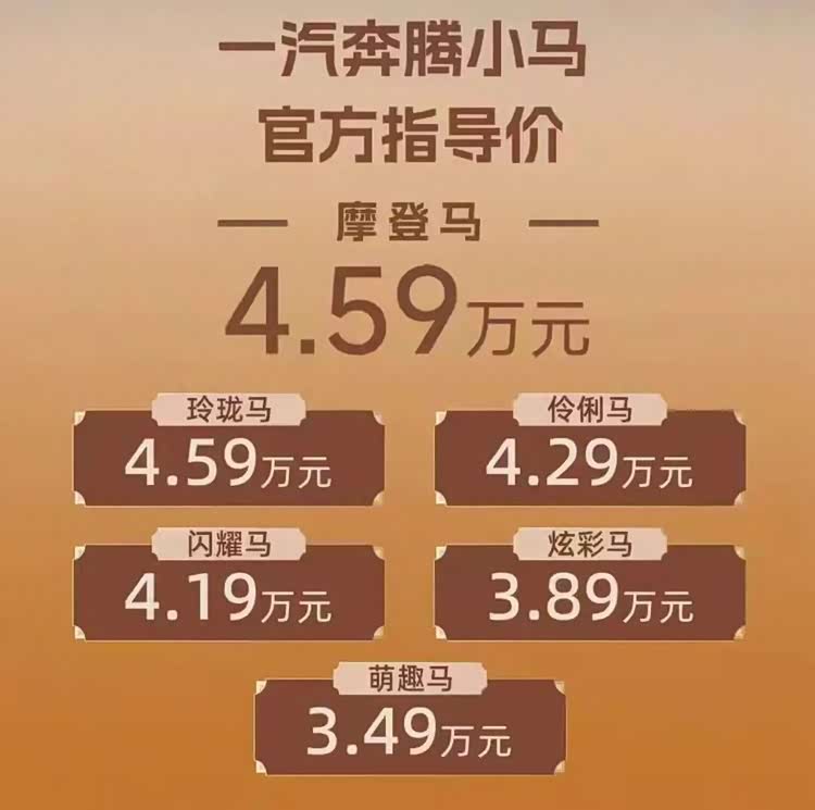 摩登马的出现,丰富了奔腾小马的产品线,还为消费者提供了一个性价比极高的选择。它以合理的价格、丰富的配置以及极具吸引力的购车优惠政策,满足了消费者对于个性化、实用性和经济性的多重需求。让我们期待它未来的表现吧。