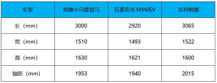再看动力、续航,但有意思的是,三车的(4万多)版本就像约好的一样,配备的电机最大功率都是30kW,最大扭矩不尽相同,吉利熊猫明显有些优势,另外两款则差距不大。而续航方面,却是“摩登马”更有优势,同时在百公里电耗上有明显优势。用车成本也就更低。