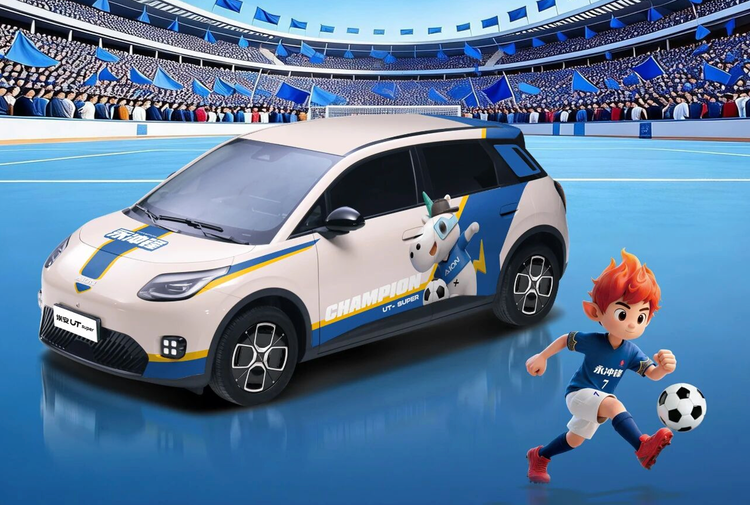 该车型为广汽埃安为庆祝永州足球队获得 2025 湘超冠军打造而来,其外观拥有专属的“永冲锋”冠军车衣,以“永州蓝”为底色、埃安独角北鼻为载体。