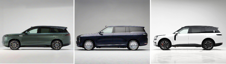 智己LS9在三款车中是最长的,有5279毫米,比领克900多出39毫米,但是外观视觉上LS9显得大得多。