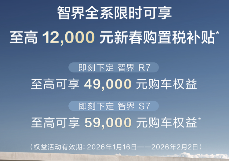 如果你正在为春节返乡计划寻找一款可靠、舒适且智能的座驾,智界R7或S7是当之无愧的理性选择。当前福利政策限时开放,赶快行动,到店试驾吧,在春节团聚的路上,用智界车型让美好旅途启程!
