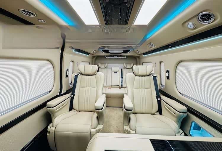 丰田海狮HIACE的车厢设计宽敞,中间走道巧妙地将乘客座椅分隔开,方便了乘客的进出和乘坐。所有座椅均采用高级真皮材质,并配备可调节的头枕和椅背,贴合人体曲线,让乘客在旅途中享受极致舒适。同时,安全扶手的设计为乘客提供额外的安全感和舒适感。新车的流线型高车身和大气方正的车头,给人一种稳健而富有安全感的印象。强健而宽大的车身,让商旅体验更加舒适安全。车窗窗框后部支架以简约前卫的方式倾斜向后,与深灰色隐私车窗的宽大设计相得益彰,使车身侧面的外观保持流畅连贯,整体更加协调自然。