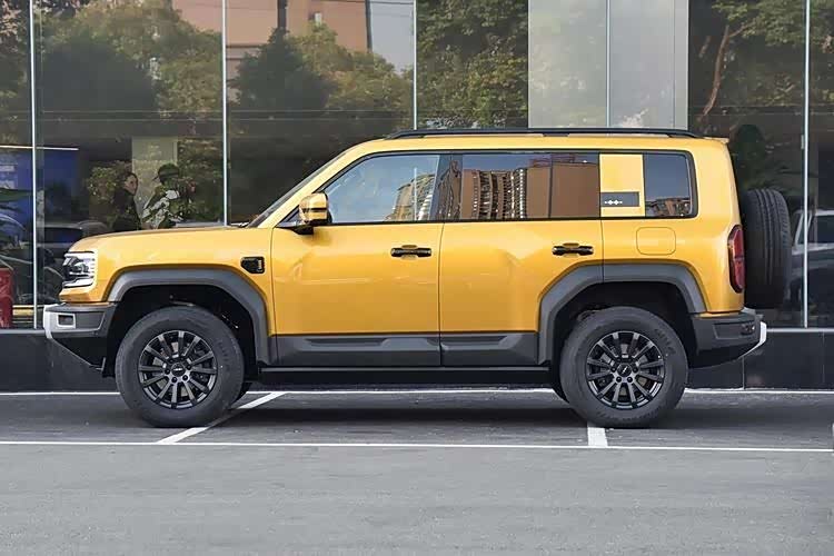 方盒子造型刚健有力,外扩的方形轮拱和黑色侧裙赋予其野性之美。黑色行李架、窗框和门把手彰显独特个性。前排侧窗采用多层隔音玻璃,有效隔绝外界嘈杂声音。后排侧窗则采用隐私玻璃,保护隐私。外后视镜具备加热功能,倒车时自动下翻,锁车时自动折叠,方便实用。车侧固定脚踏板让老人和孩子上下车更加便捷。尾部高大立体,侧开式尾门和外挂式备胎增强了越野特性。纵向布局的红色尾灯内部构造精巧,LED光源亮起时,深邃感油然而生。