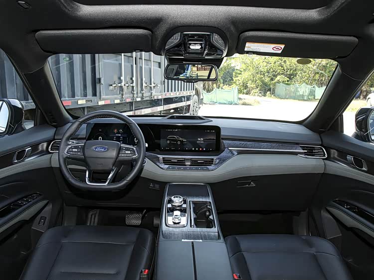 我们首先来看新车的外观设计方面,福特领裕PHEV的车头设计采用了福特最新的家族化设计语言,全新的L形前大灯组与贯穿式灯带相得益彰,不仅提升了前脸的科技感,还让整车看起来更加精致。矩阵式格栅的加入,进一步增强了前脸的层次感与视觉冲击力。这种设计不仅符合当下年轻消费者的审美趋势,也展现了福特品牌在新能源领域的创新精神。