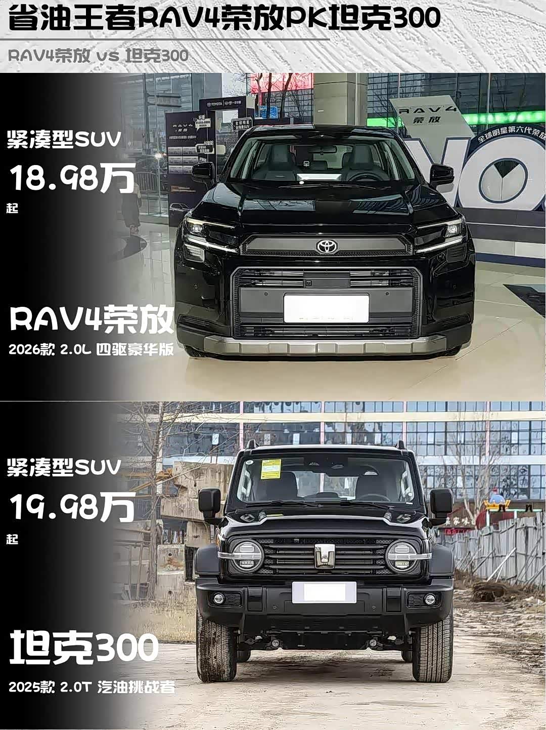 车家号·0浏览·2026-01-18 08:20 · 北京最近后台好多兄弟在问 RAV4荣放(参数|询价)和坦克300怎么选🤔 作为开过两台车的老司机,今天就从真实用车场景给你们掰扯清楚!