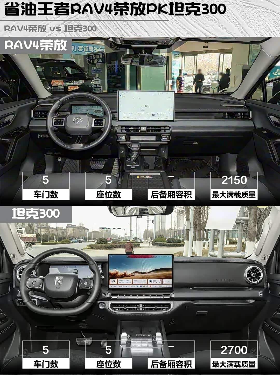RAV4后排纯平地板+580L后备箱,搬家能塞下洗衣机。坦克300后排靠背直得像军训,但Nappa真皮座椅通风按摩真香!隔音?俩车超过80km/h都得靠音乐压噪音🎵