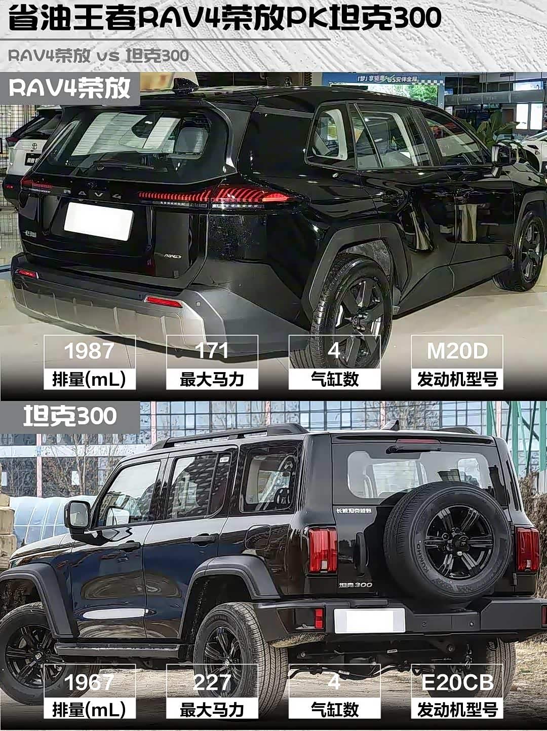 RAV4车主狂喜:市区7-8L/高速5.5L,加92油能跑900公里!坦克300市区12L起步,不过80L大油箱续航也不虚。要是天天通勤,RAV4省下的油钱够买半年奶茶☕️