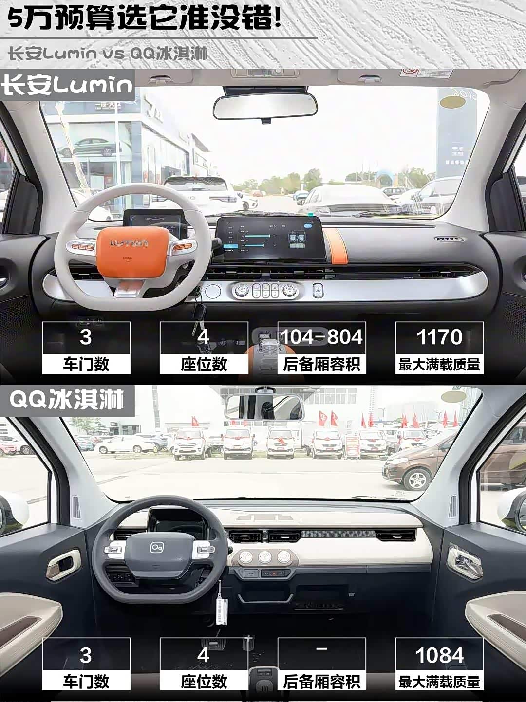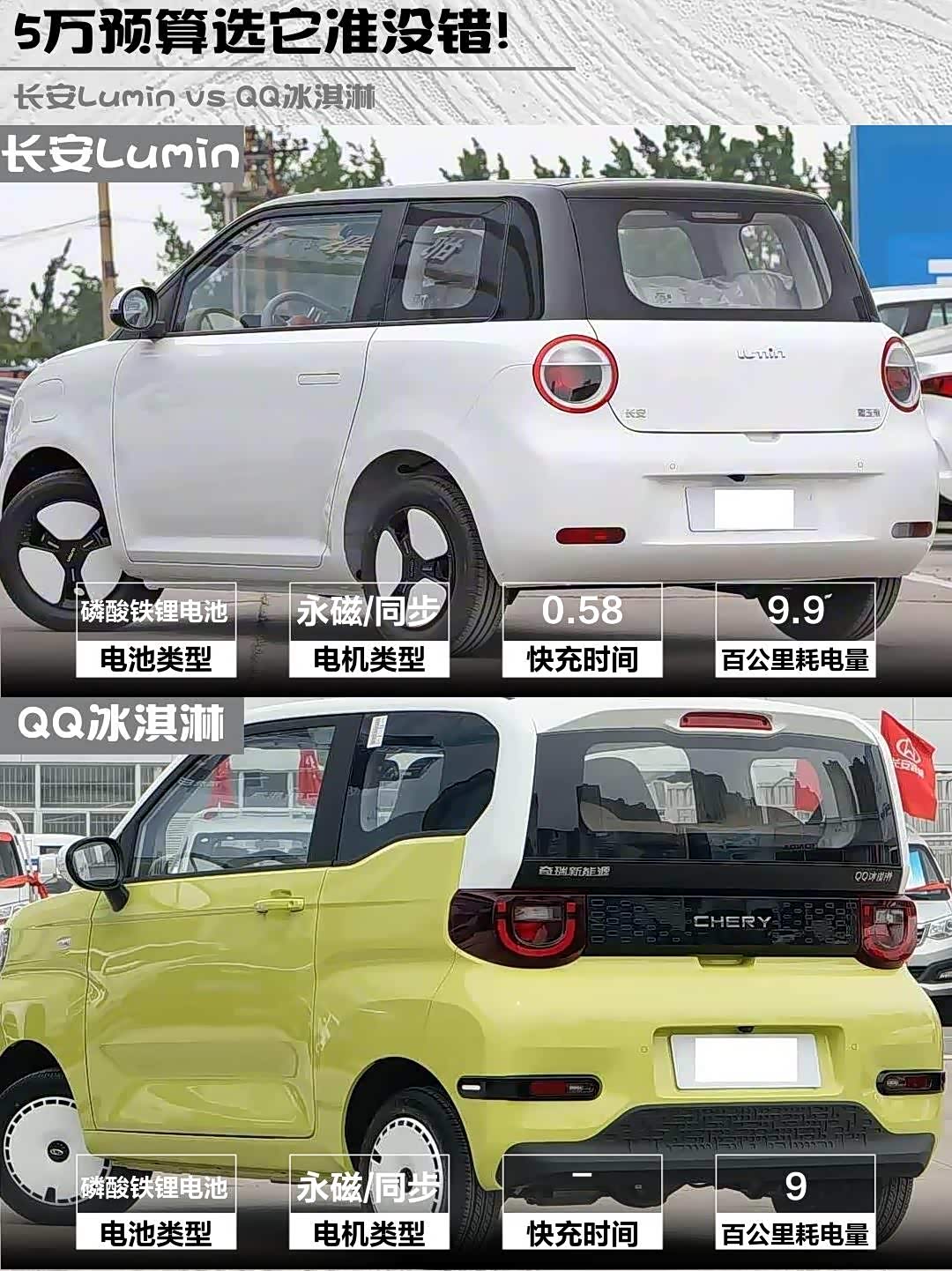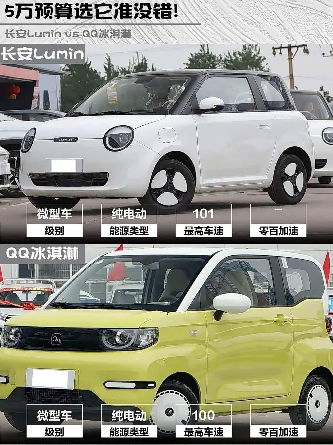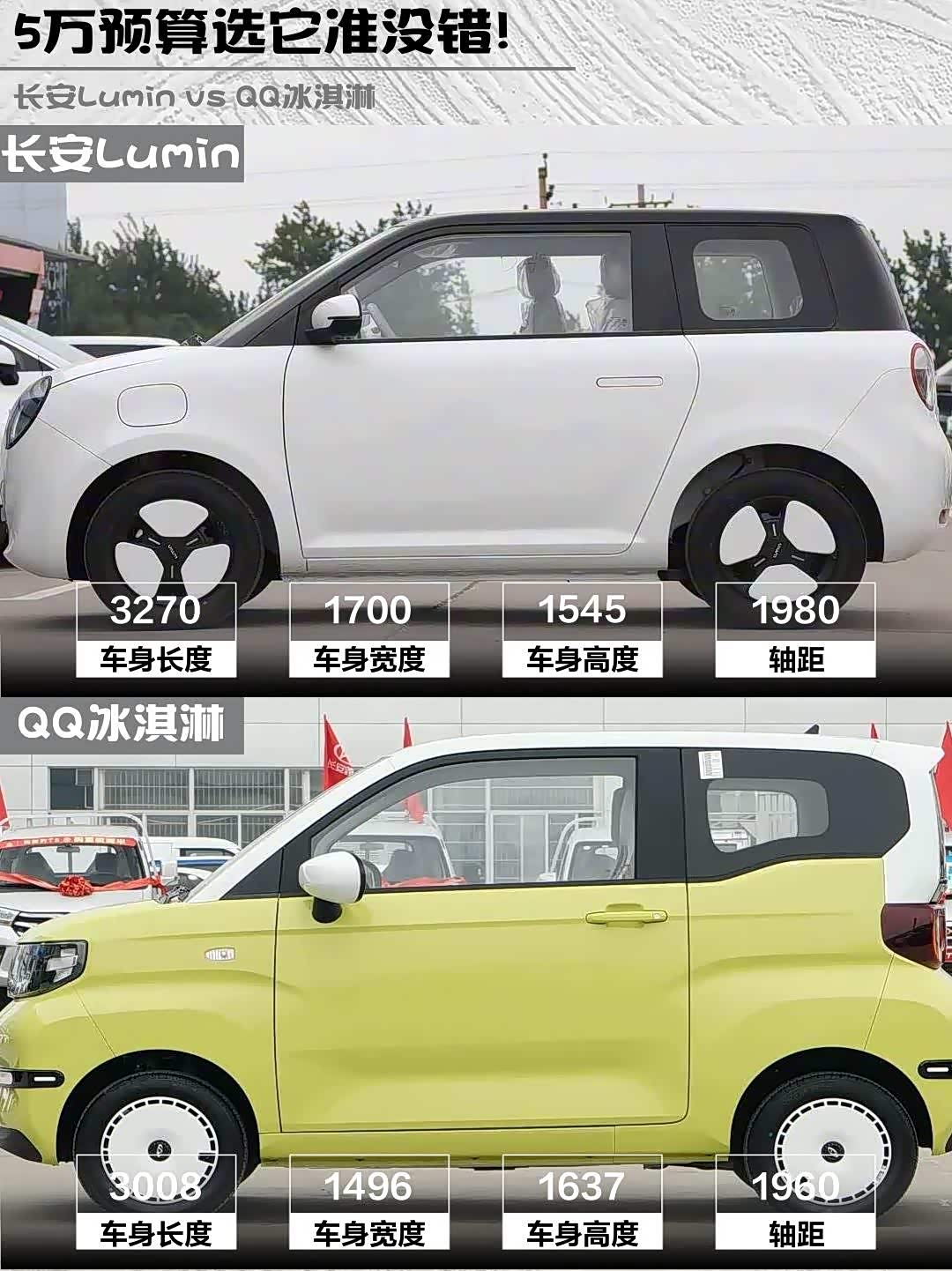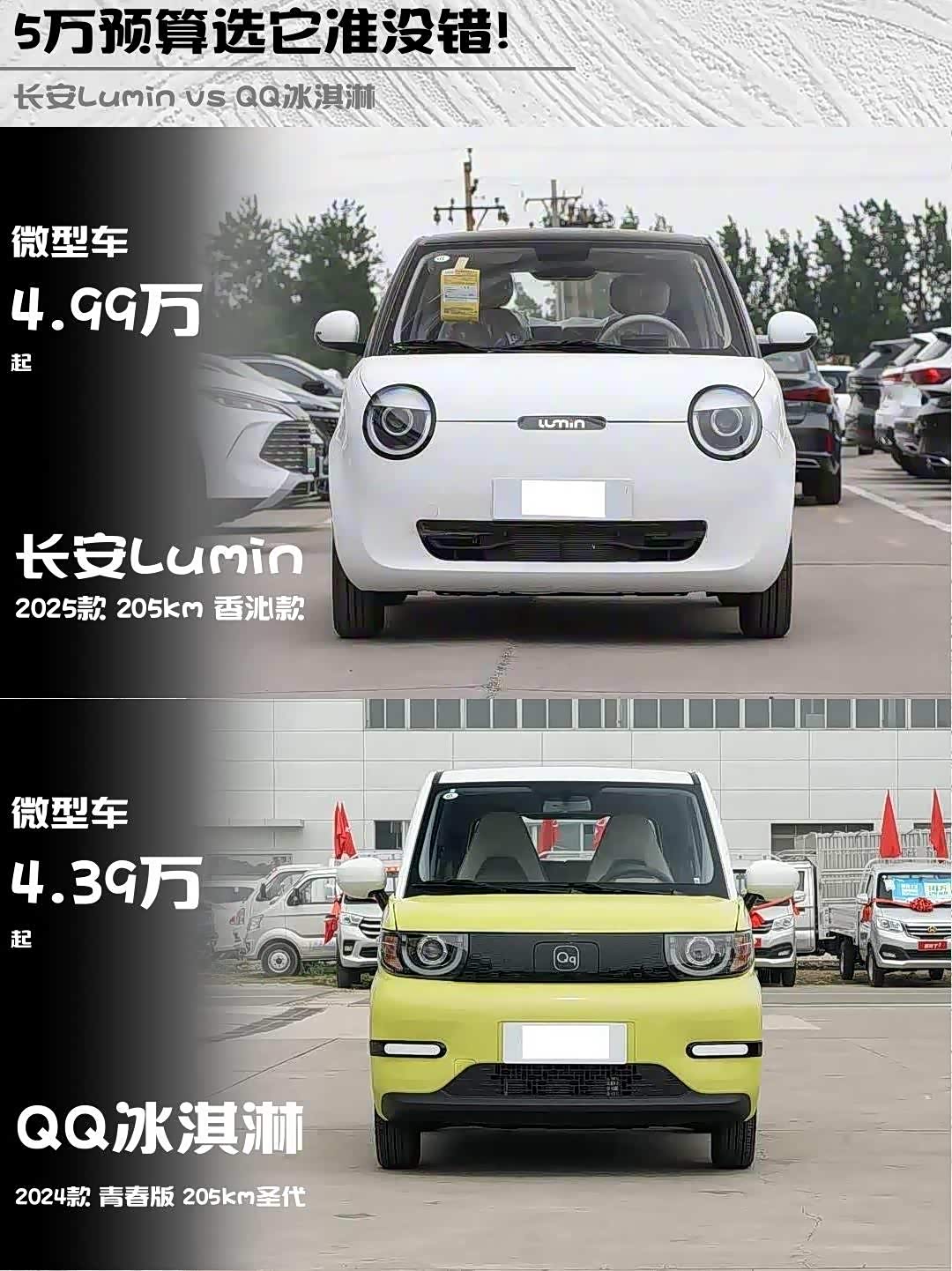 最近在纠结5万预算买微型电动车? 长安Lumin(参数|询价) 2025款 205km香沁款和QQ冰淇淋2024款青春版205km圣代深度对比来啦!实测干货直接上菜👇