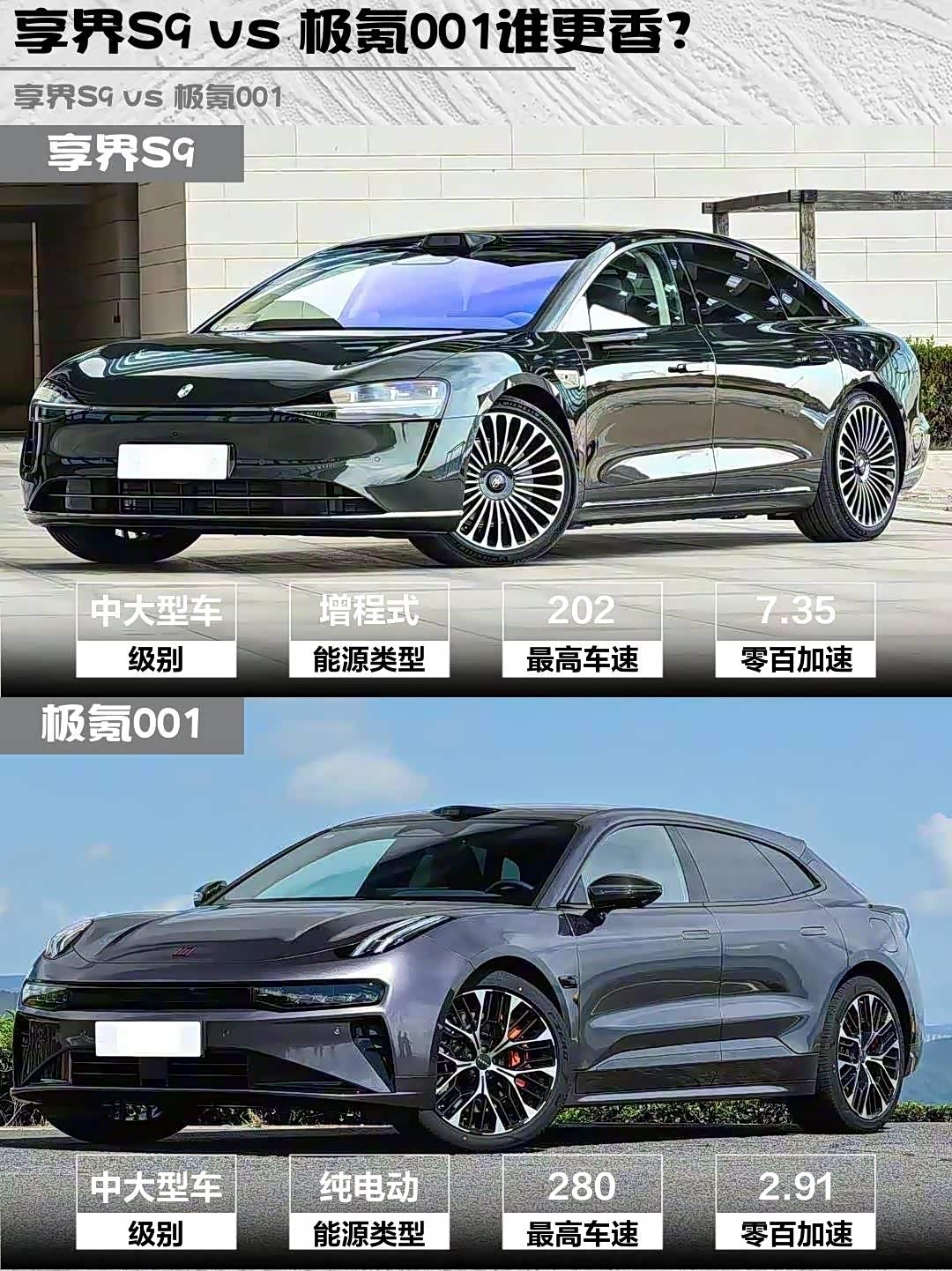 享界S9适合商务精英,寰宇红车漆+无框车门往酒店门口一停就是排面。极氪001更适合玩车党,布雷博卡钳+星空顶夜店风拉满。两台车都标配空悬,但享界S9的华为智驾包和极氪001的29扬声器音响,建议一定要选装!