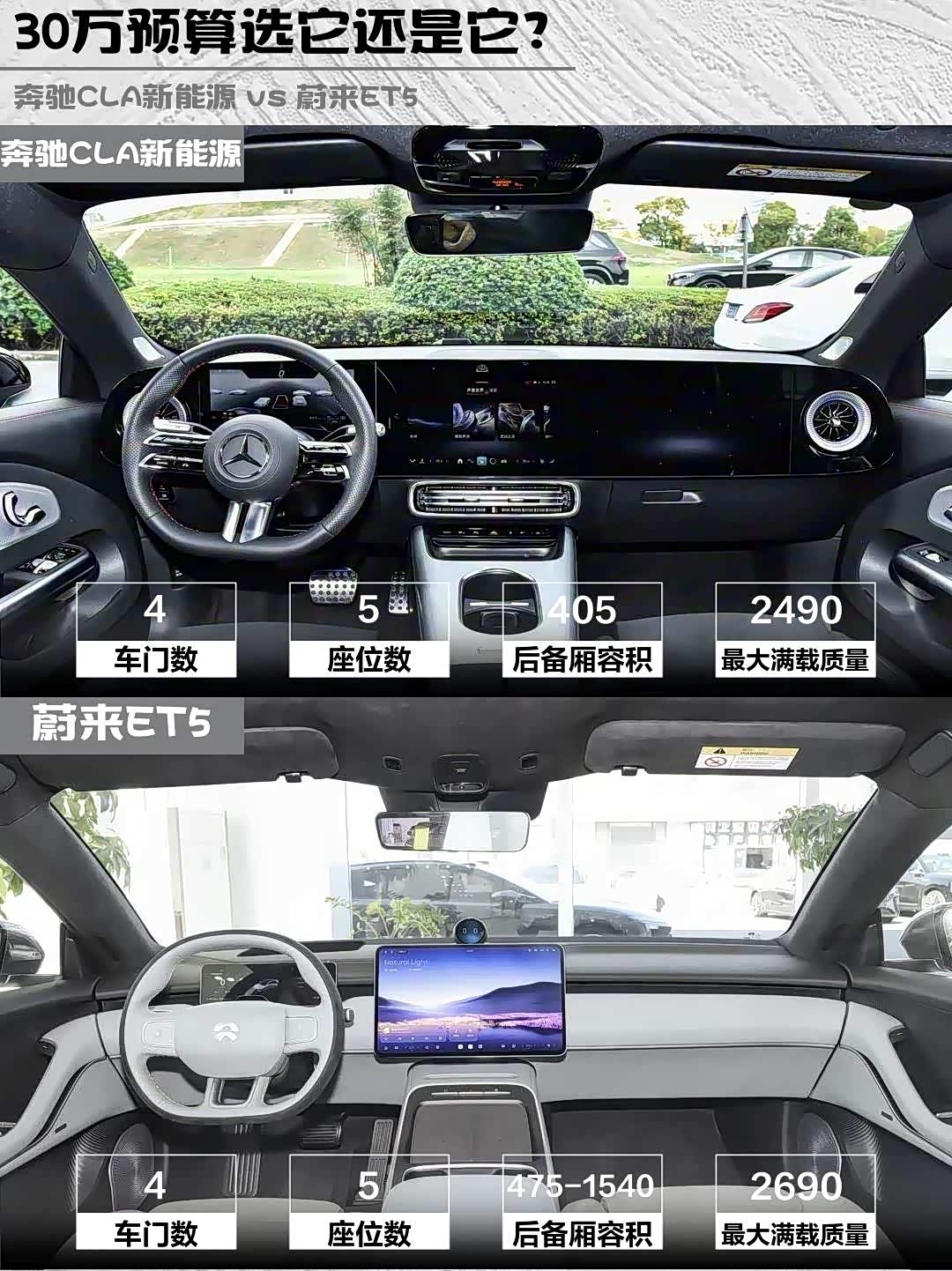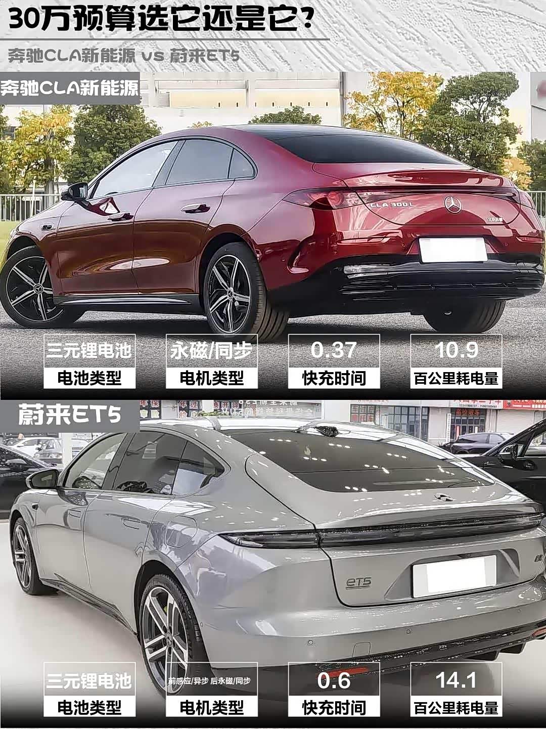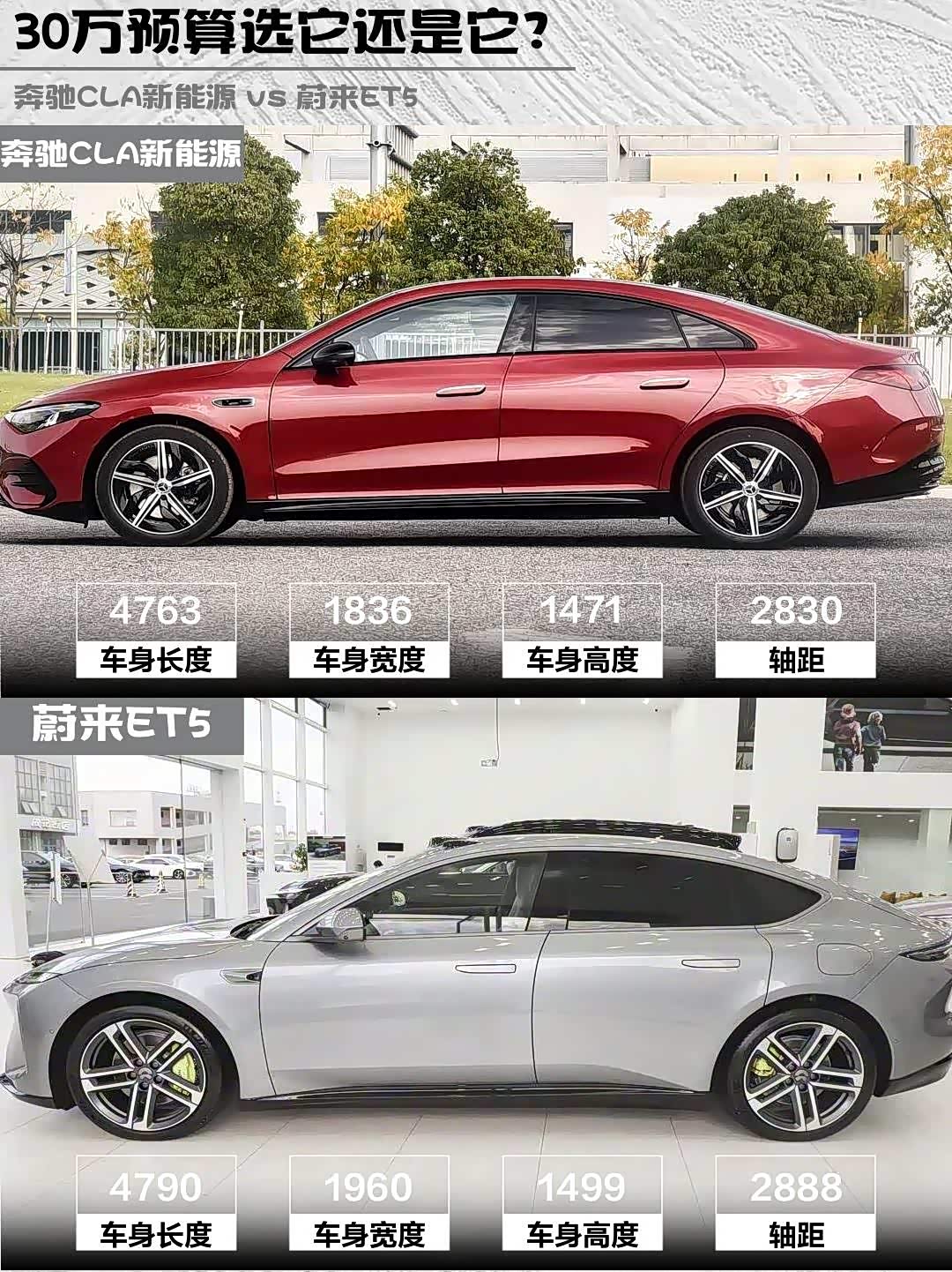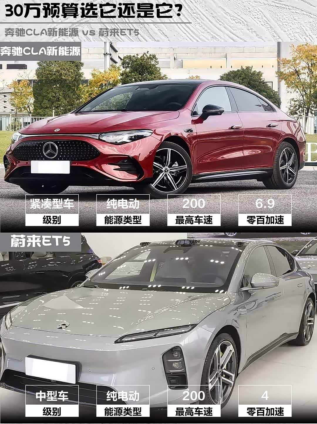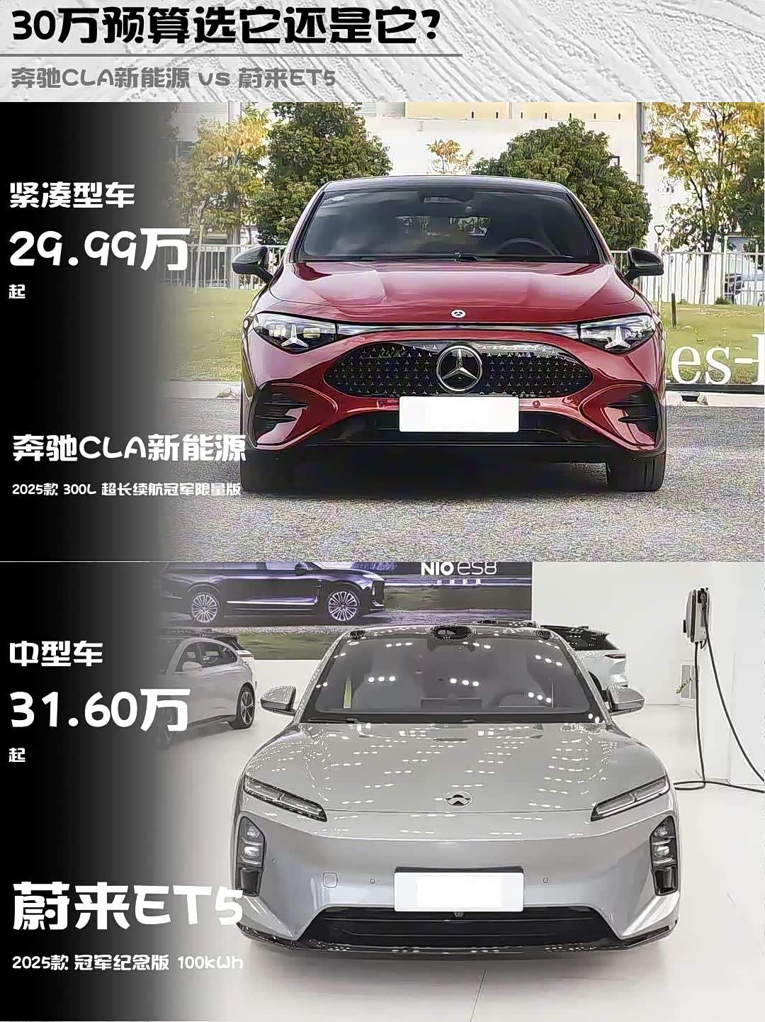 奔驰CLA新能源(参数|询价) 2025款 300L超长续航冠军限量版 vs 蔚来ET5 2025款冠军纪念版,30万级纯电轿跑怎么选?🤔