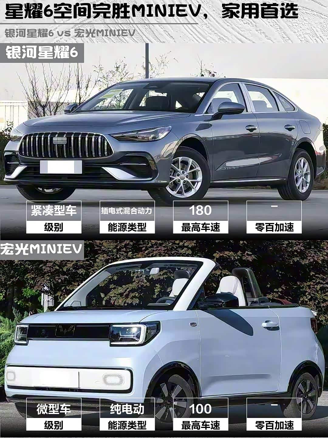 星耀6的L2辅助驾驶+全速自适应巡航跑高速超省心,14.6英寸大屏还能方言控制。宏光MINIEV敞篷版胜在「拉风属性」,但配置寒酸到连中控屏都没有,倒车影像还是后期加装的...
