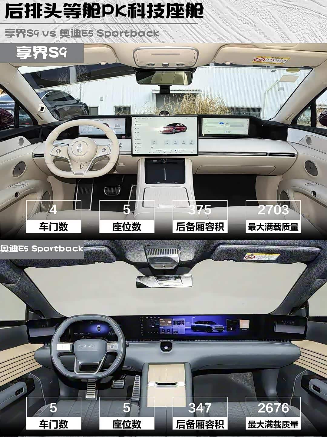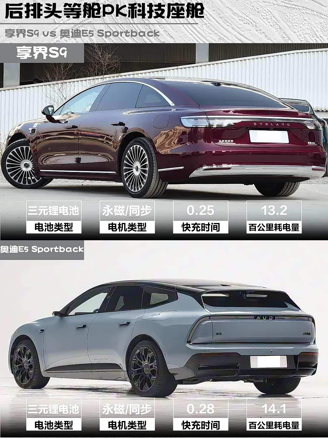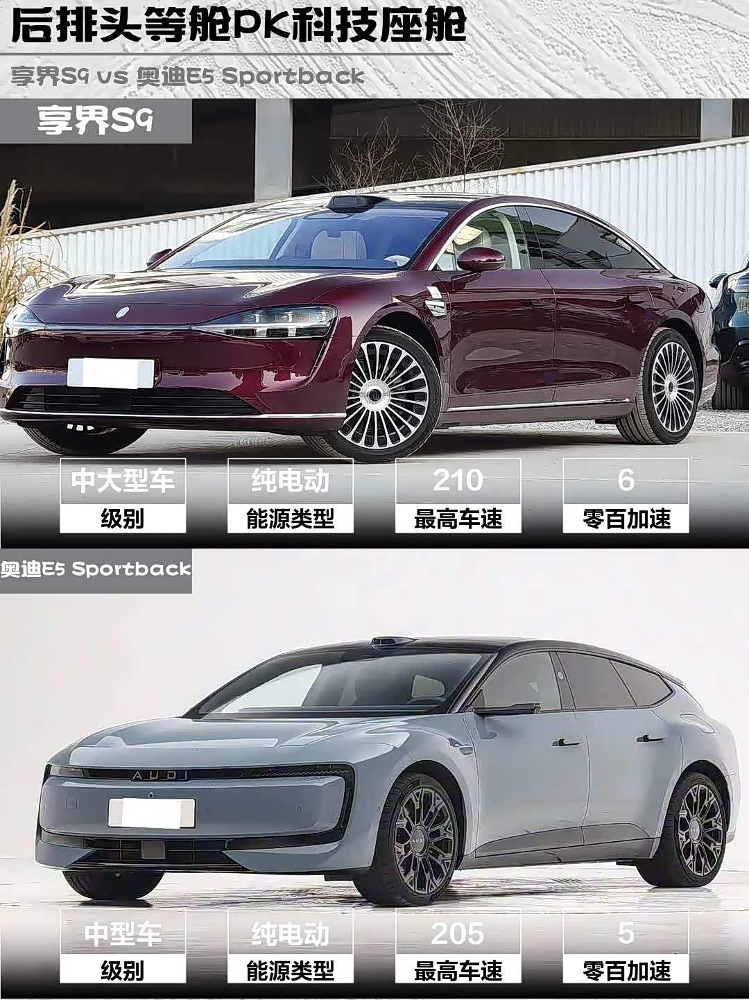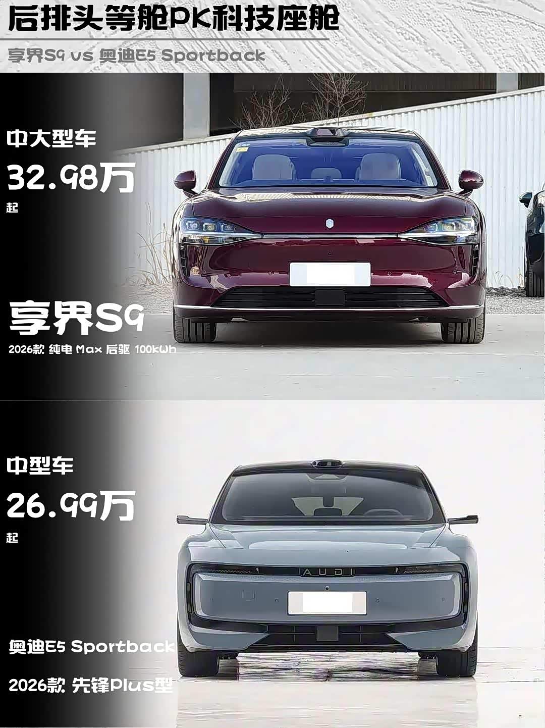 最近深度体验了两款热门纯电轿车——享界S9 2026款 纯电 Max 后驱 100kWh和 奥迪E5 Sportback(参数|询价) 2026款 先锋Plus型,发现它们虽然价位相近(32.98万 vs 26.99万),但性格截然不同!作为技术控,我来扒一扒它们的真实差异👇