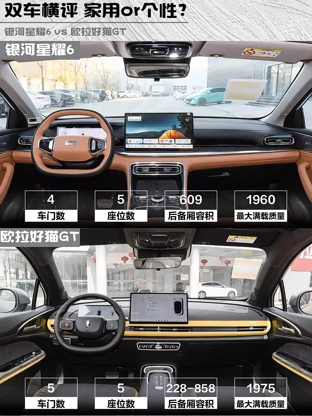 星耀6三围4806mm直接越级,后排能跷二郎腿,609L后备箱能塞下婴儿车+行李箱!好猫GT虽然后排够用,但后备箱常规只有228L,放大件得放倒座椅。不过好猫GT有电动尾门,星耀6得手动开关,雨天略狼狈🌧️