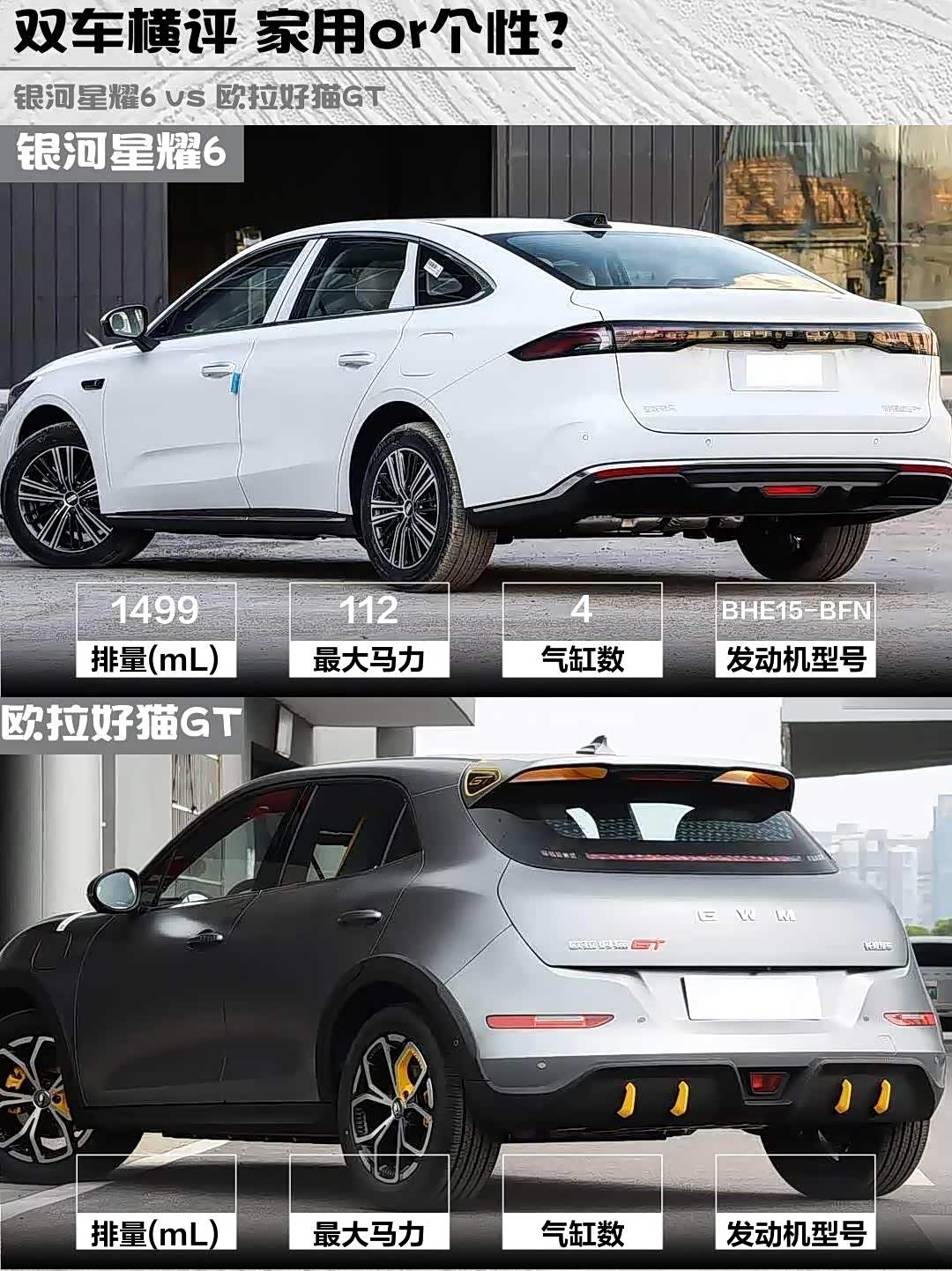 星耀6走商务运动风,直瀑格栅+溜背设计,像穿西装的运动员;好猫GT则是改装车既视感,黑化套件+尾翼,开上路回头率200%!个人觉得星耀6耐看,好猫GT更个性,你们pick哪款?🤔