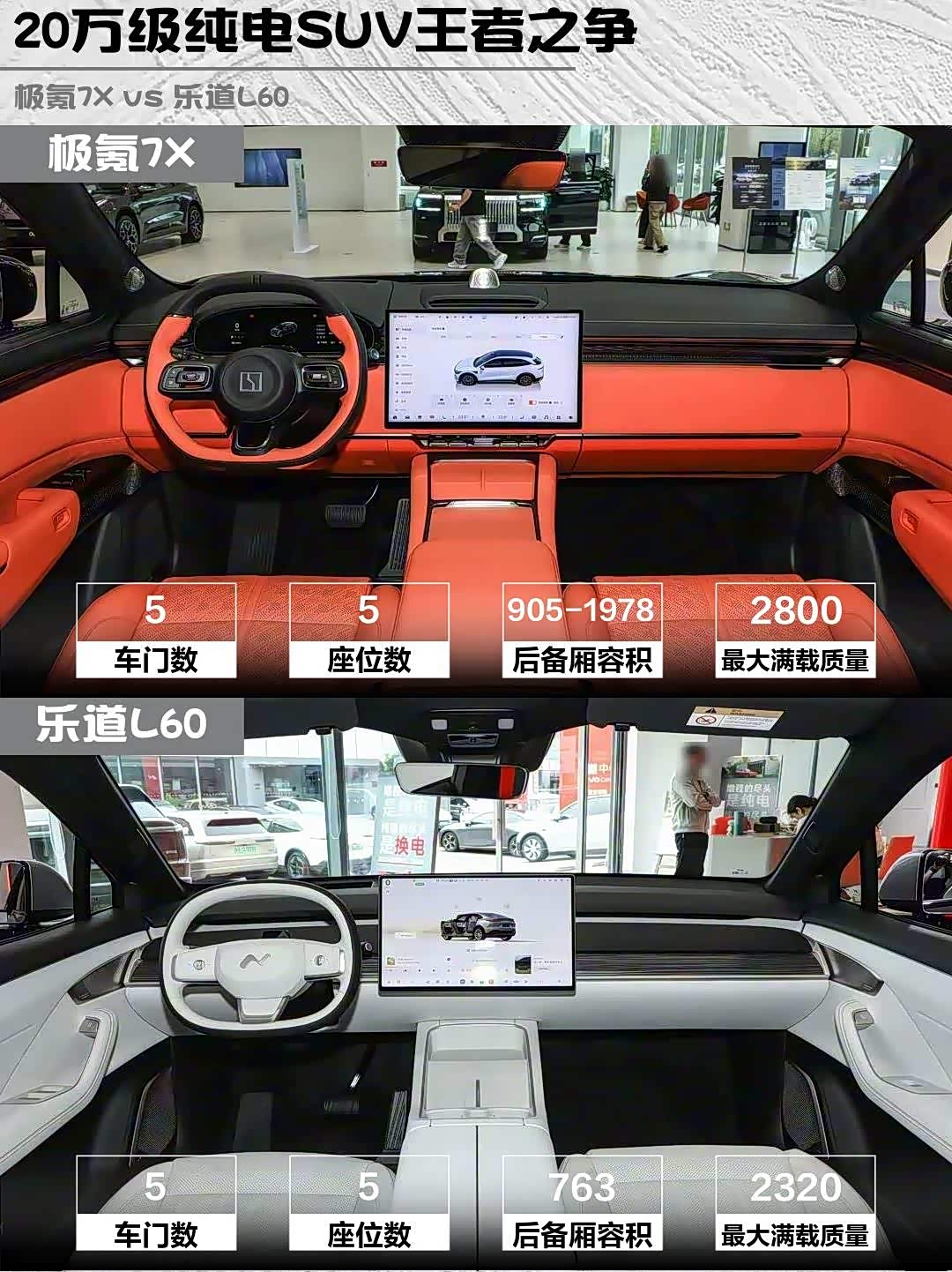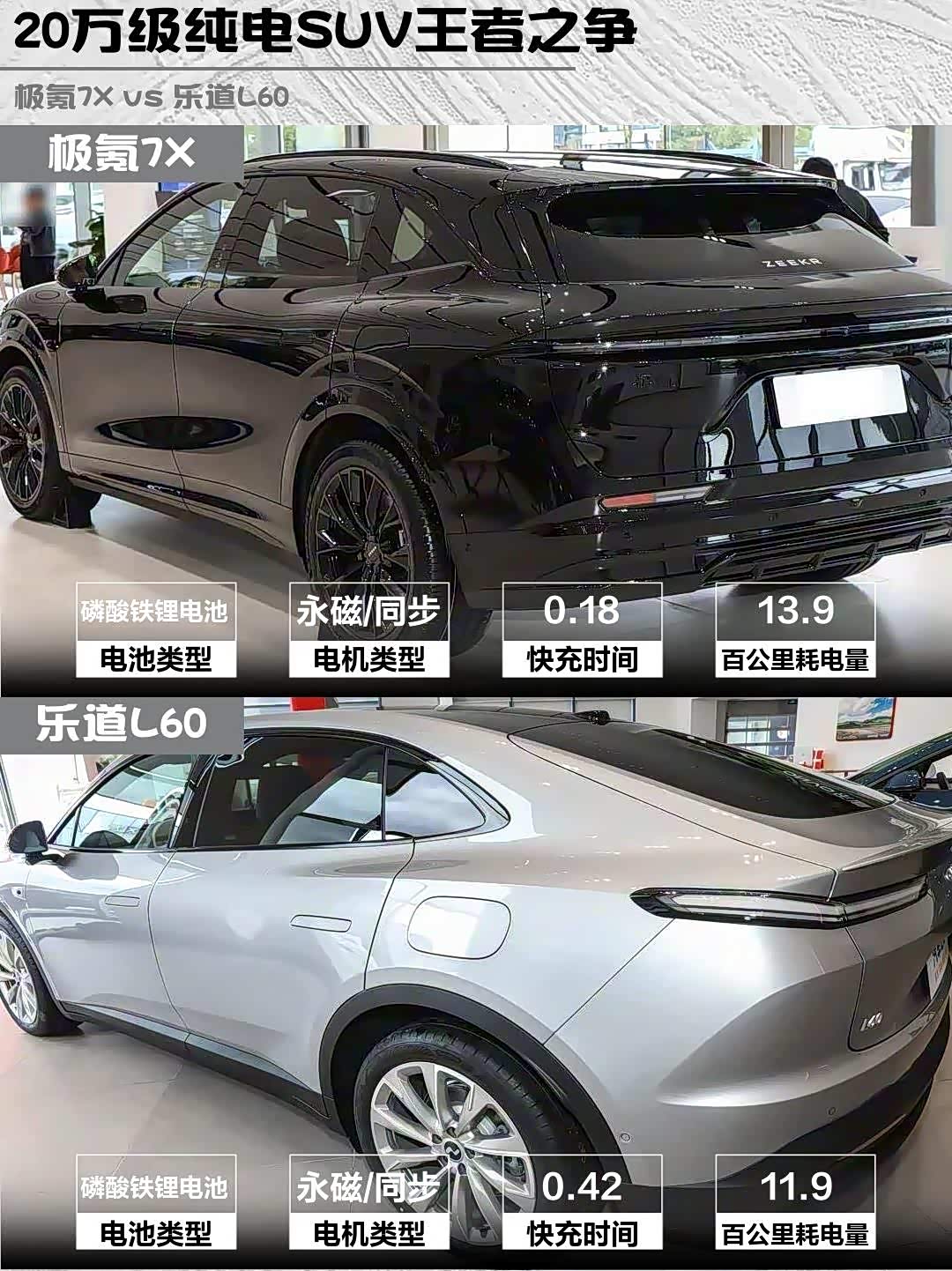 两台车都是2025年的实力派,7X像穿着西装的运动员,乐道L60则是科技暖男。最后说个冷知识:7X的风阻系数0.247居然比轿跑造型的乐道L60(0.229)高,但实际高速风噪控制反而更好,这波反向操作你怎么看?