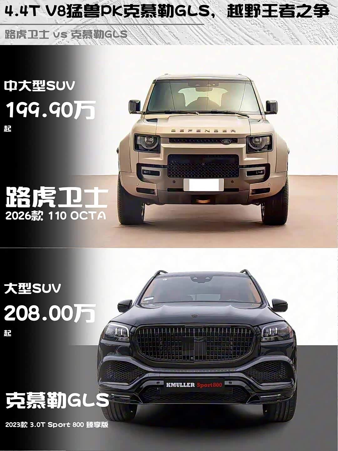 当硬核越野遇上豪华旗舰,路虎卫士2026款110 OCTA和 克慕勒GLS(参数|询价) 2023款3.0T Sport 800臻享版这两台百万级SUV,到底谁更值得掏腰包?今天带你们深度扒一扒!🔥