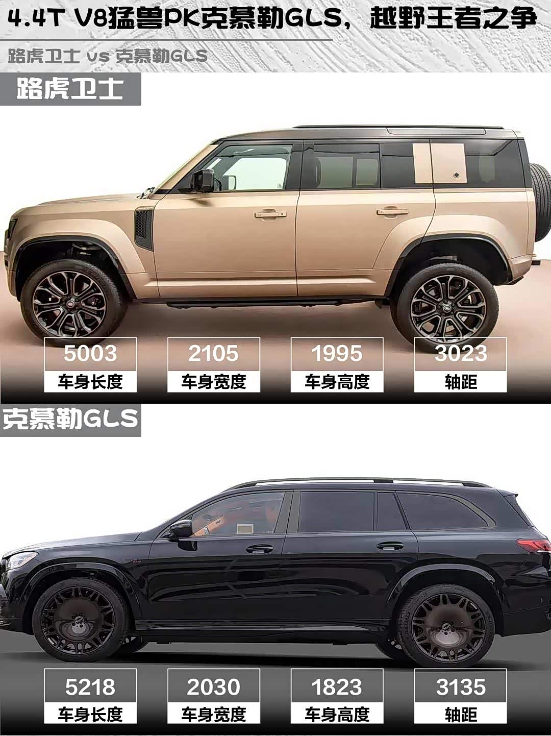 卫士110 OCTA那颗4.4T V8心脏简直暴力美学代表,635马力+750N·m扭矩,4秒破百的推背感堪比过山车🎢!对比克慕勒GLS的3.0T L6(367马力),越野老炮们肯定站卫士。但GLS的9AT变速箱+48V轻混,城市通勤油耗仅9.8L/100km,比卫士13L的胃口秀气多了,加油时钱包不会瑟瑟发抖⛽️。