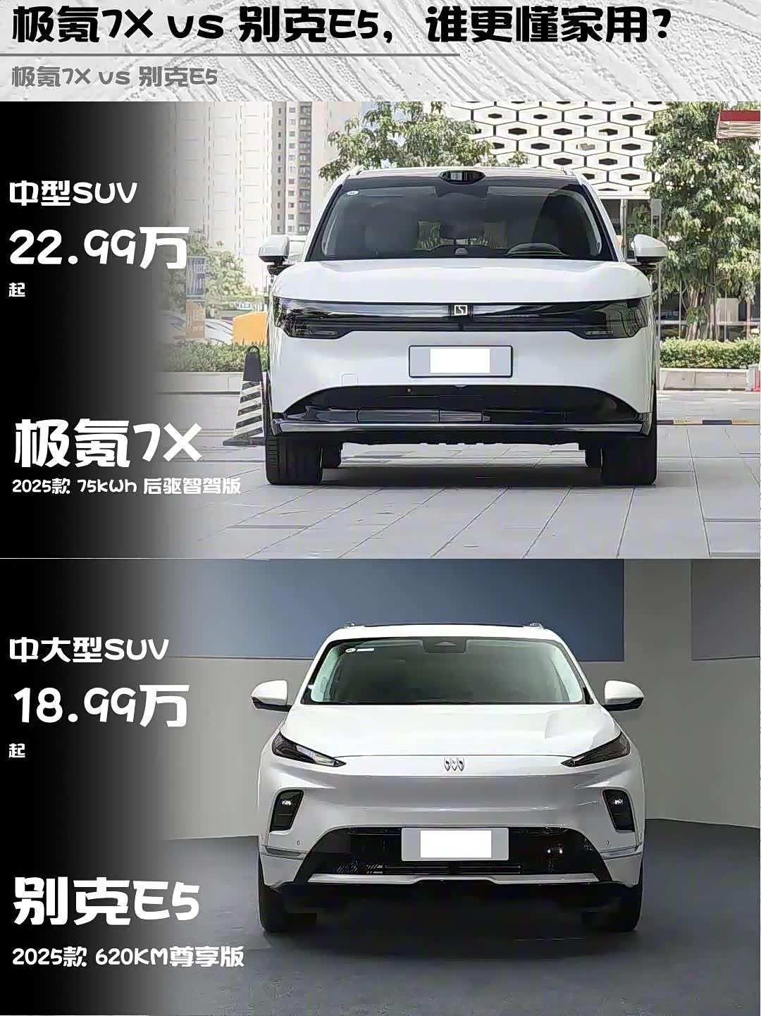 车家号·0浏览·2026-01-18 08:40 · 北京最近在选25万级纯电SUV的朋友看过来! 极氪7X(参数|询价)和别克E5这两台热门车我都深度试驾了,掏心窝子说说真实感受🔥