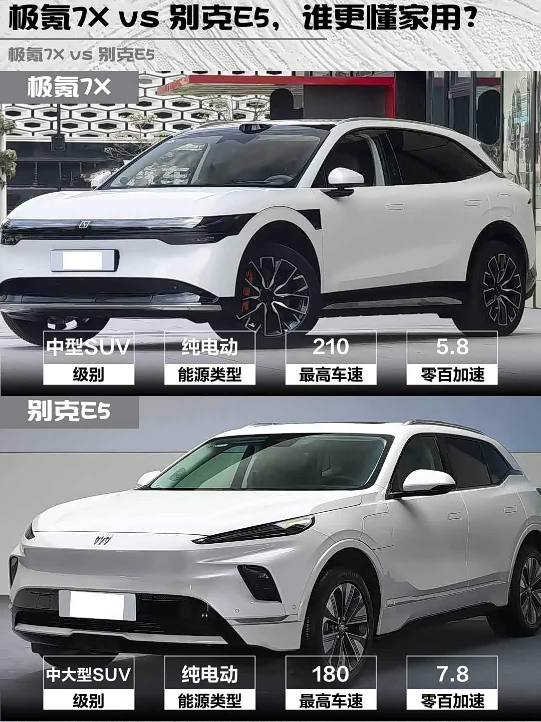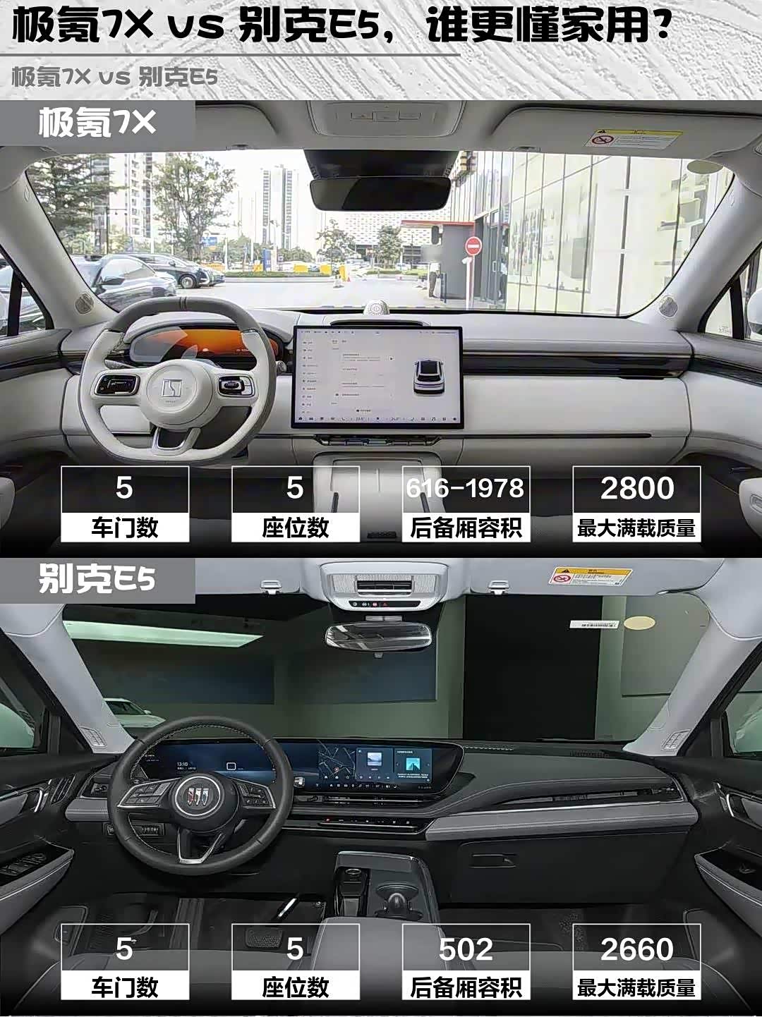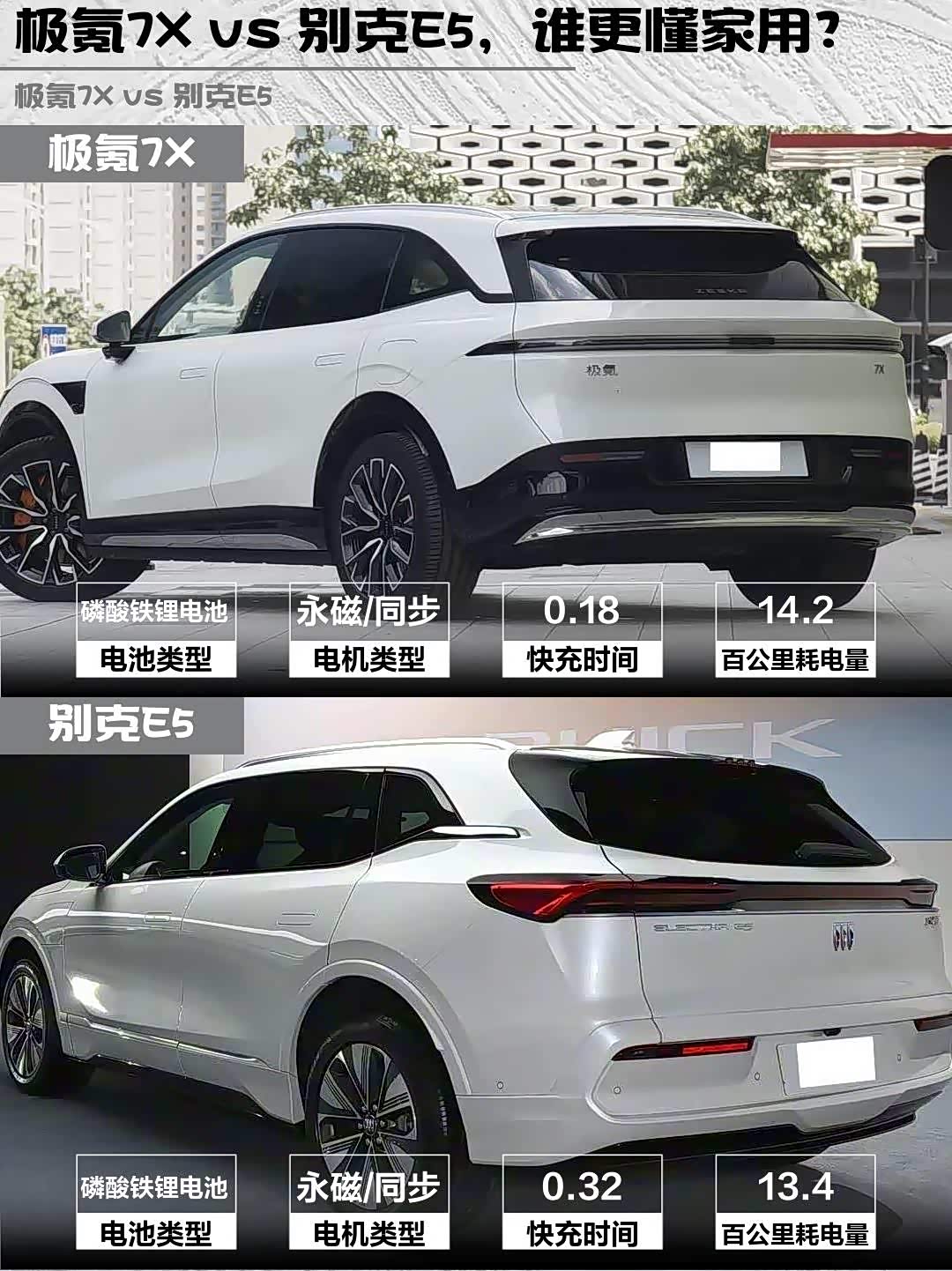 最后暴论:这两台车根本是不同性格!要我说极氪7X像穿AJ的潮男,别克E5像穿POLO衫的暖叔,你们会pick谁?