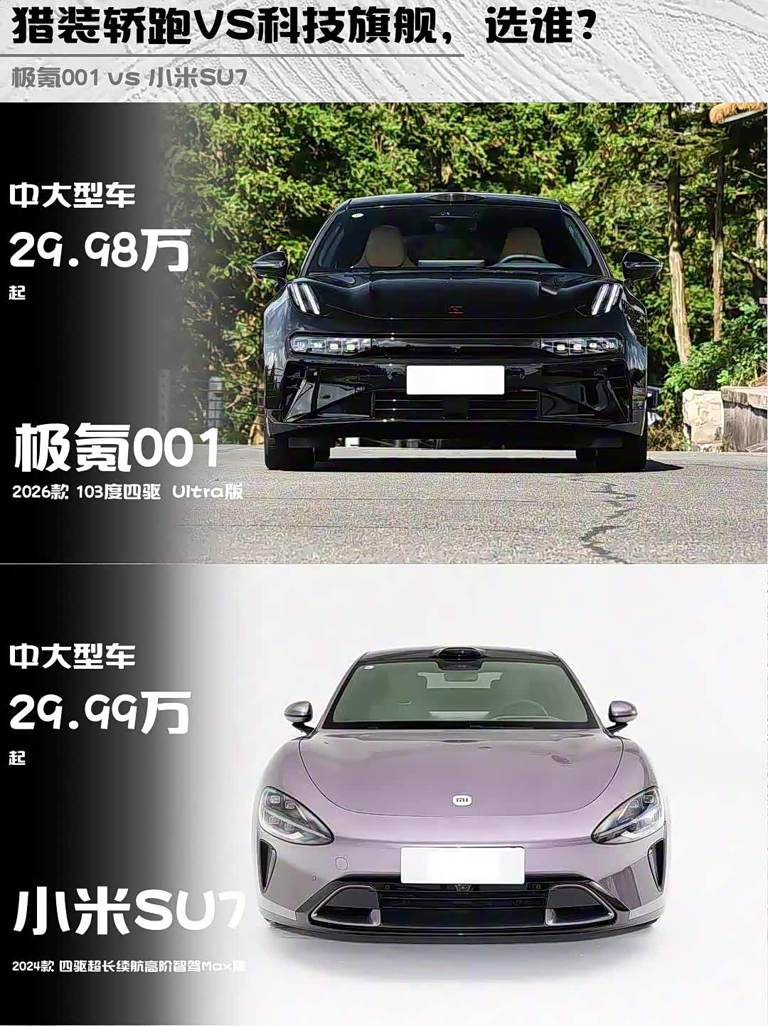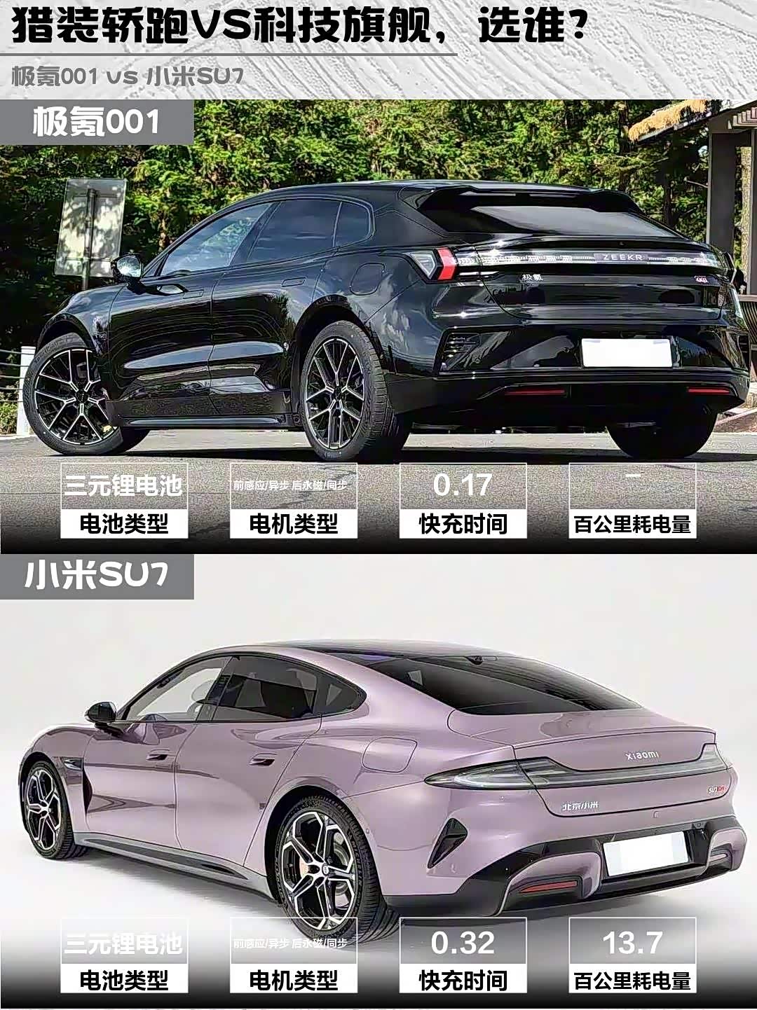 要豪华感+猎装范选极氪001,音响和空间堪称30万级天花板;重科技体验选小米SU7,车机生态和充电速度更胜一筹。偷偷说:极氪车主群里多是玩改装的大叔,小米车友会则像科技宅聚会,你品,你细品~