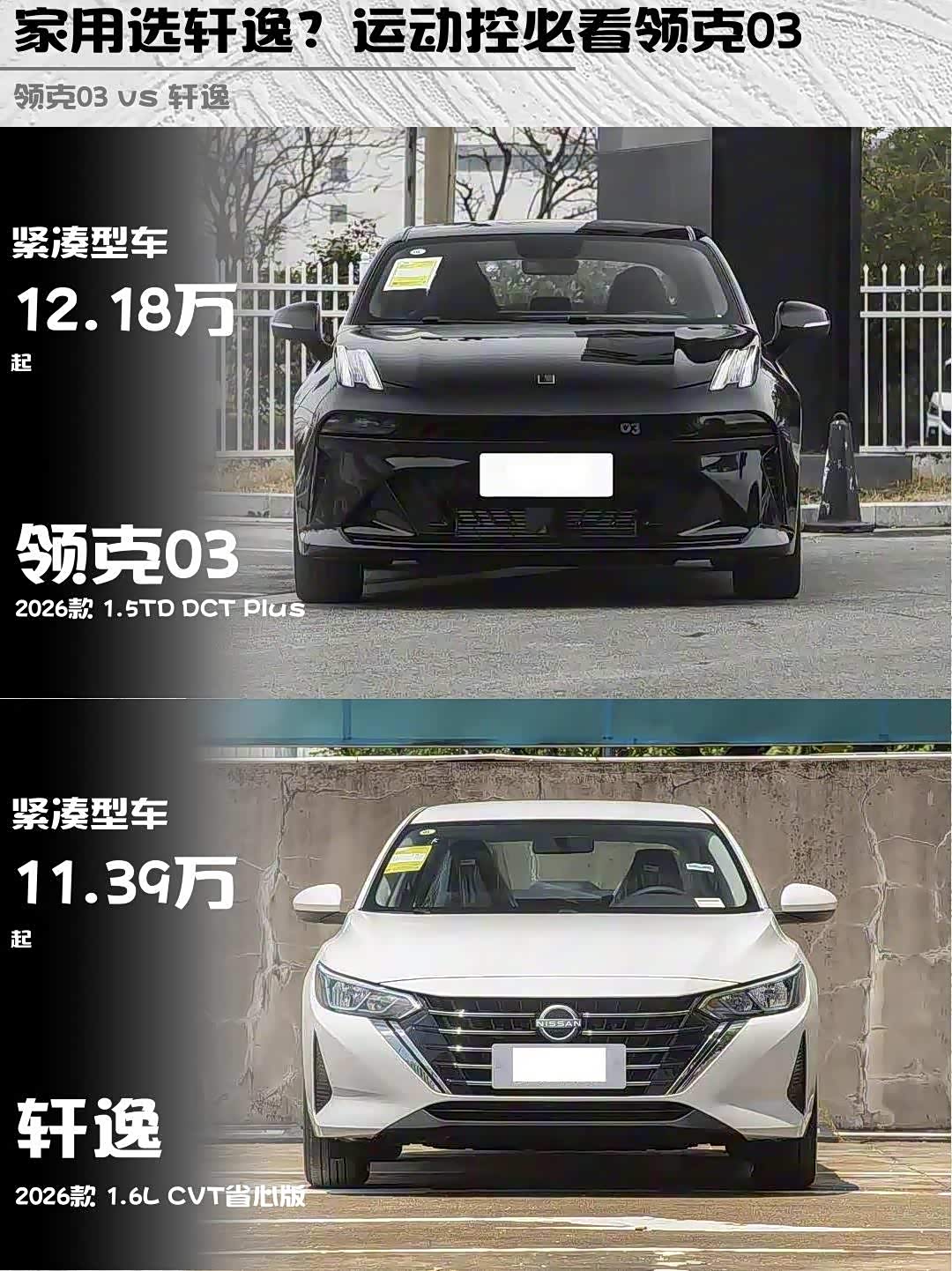 最近在纠结12万级家轿选运动派还是务实派?实测2026款 领克03(参数|询价) 1.5TD DCT Plus和轩逸1.6L CVT省心版,结果有点意外…🔥