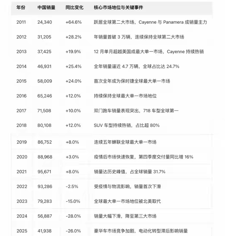 中国市场是保时捷2025年财报上“销量下滑幅度较高”的一块。全年仅交付41,938辆,同比暴跌26%,几乎下滑了三成。