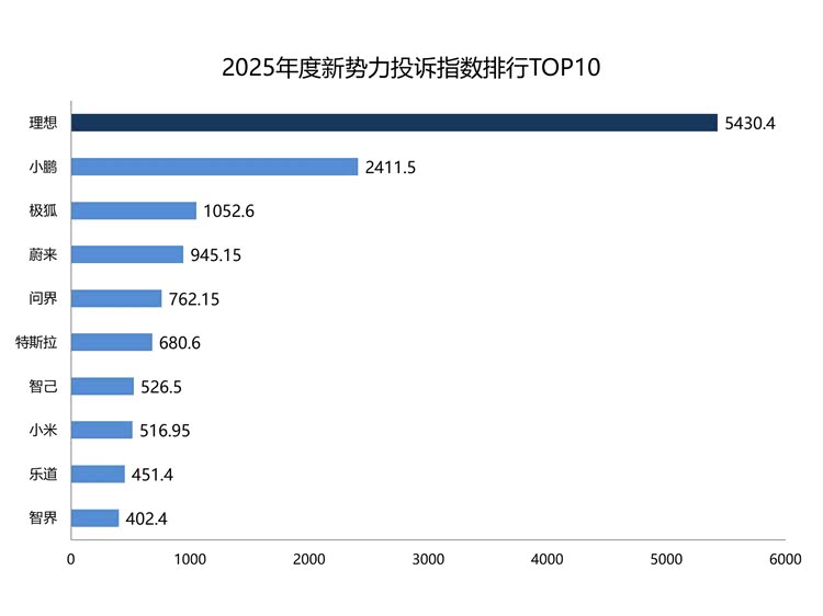 汽车质量投诉点评:去年,理想投诉指数高达5430.4,同比涨超5倍。这背后,下摆臂异响和新车降价遭到了车主们的集中投诉。2025年7月,理想L系列焕新版出现大规模异响问题,多位车主反映提车后不久就会出现左下支臂、右下支臂异响,行驶约2700公里时转向异响明显。面对车主们的投诉,官方解释了异响原因并提供了补偿。此次风波平息后,理想因对理想L系列调整销售政策被老车主认为是变相降价从而遭到投诉。