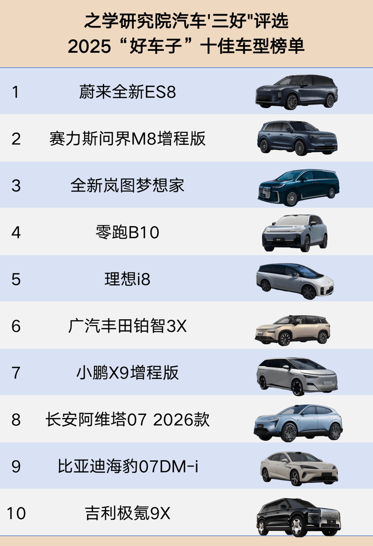 2025“好车子”十佳车型榜单