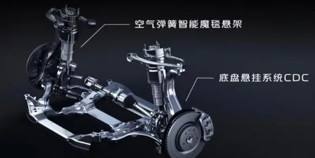 基于长安SDA天枢架构,长安启源E07的底盘采用了双独立全铝悬架。前悬架为双叉臂独立悬挂,后悬架为H臂独立悬挂,相较于传统的多连杆式悬挂,其刚度更高,抗冲击能力更强。此外,配合CDC可变阻尼悬挂及空气弹簧,可实现90mm的高低调节范围(静态),并在不同车速下自动调整高度和硬度,从容应对各类复杂路况,灵活满足用户的运动或舒适性需求。