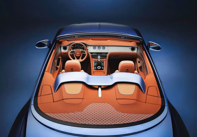 从整车色彩结构来看,Batur Convertible #4并未追求复杂拼色,而是以三大区域形成清晰的视觉层级。车身主体采用名为Breslow Blue的午夜蓝涂装,承担整车的基准色角色;前机舱盖与软顶敞篷区域采用高光银色,形成材质与光线的区隔;内饰则以棕色体系作为延展。这种配色方式并非单纯强调对比,而是通过材质反射率与光泽度差异,强化车身比例与曲面变化,在静态状态下即可呈现清晰轮廓。对于一台强调长途巡航属性的敞篷GT而言,这种克制而连贯的配色逻辑更利于长期使用与审美稳定性。