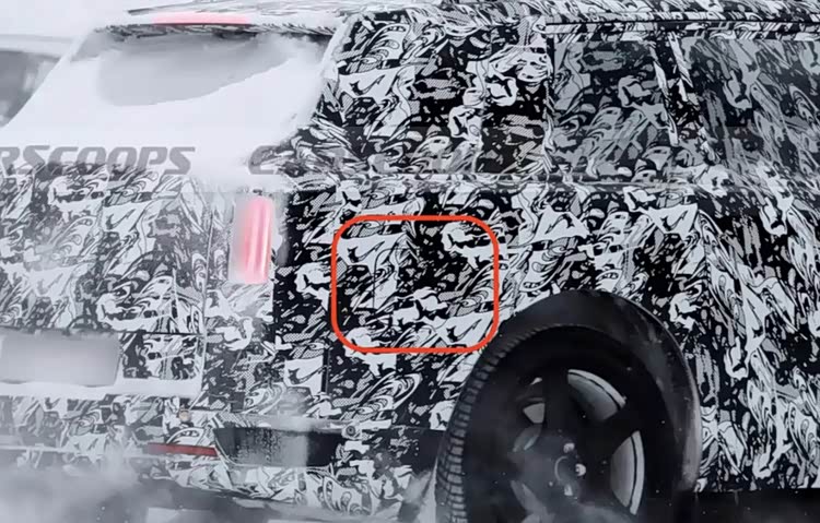 车身侧面,新车延续方正轮廓,隆起的引擎盖与锋利肩线营造强劲肌肉感,一体式门把手与车身曲面无缝融合,进一步降低风阻系数。车尾变化尤为显著,车顶上方延伸出小扰流板并配备高位刹车灯,搭配竖向布局的全新尾灯与下移至后保险杠的牌照框,视觉层次鲜明,车尾右侧后翼子板处有加油/充电开口,位置低于现款库里南,结合无排气口设计,印证其纯电身份。