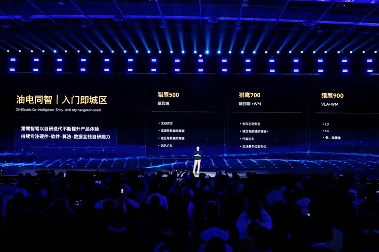 以“猎鹰智驾”为例,不仅“油电同智”,还入门即享“城区NOA”。简单说,不管你是买燃油、混动还是纯电,哪怕是买辆实惠的入门车型,系统也能在高速、甚至部分城区路段帮你开车。