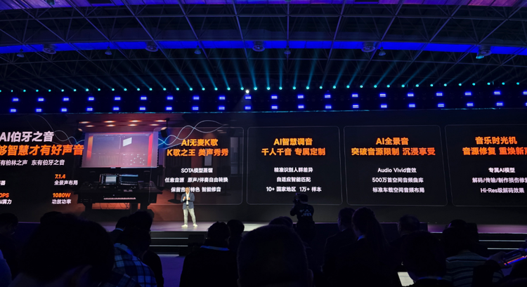 相比 T9L 更偏向动力与辅助驾驶的协作,风云 A9 的 AI 重点则明显落在座舱体验上,搭载了灵犀智舱与 Carmind 智能体,硬件也用的 8678 芯片。这款车围绕音频和交互做了更深的 AI 应用。例如伯牙之音音响系统,引入了独立的 AI 算力,用于音源重构、空间音效生成和个性化调音,支持千人千音的自动匹配。