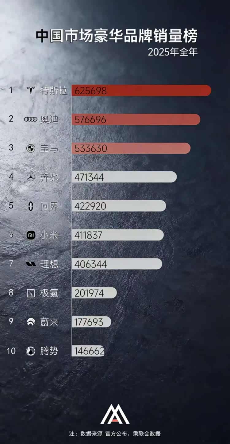 车家号·0浏览·2026-01-19 00:30 · 北京去年BBA在华新车交付量全盘下行,宝马下滑12.5%、奔驰暴跌近19%、奥迪下降5%,合计少卖约26万辆,打破了多年垄断格局,其实从豪华品牌的销量榜就能看到,三大传统豪华品牌的销量地位已经岌岌可危了。