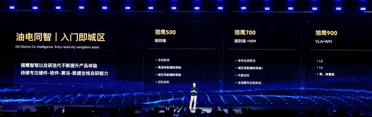 相较于部分品牌区分燃油与电动平台智能化方案的策略(例如比亚迪“天神之眼”ABC方案,吉利“千里浩瀚”H1,H3,H9)猎鹰智驾系统强调在燃油、混动及纯电平台上提供一致的智能驾驶体验。