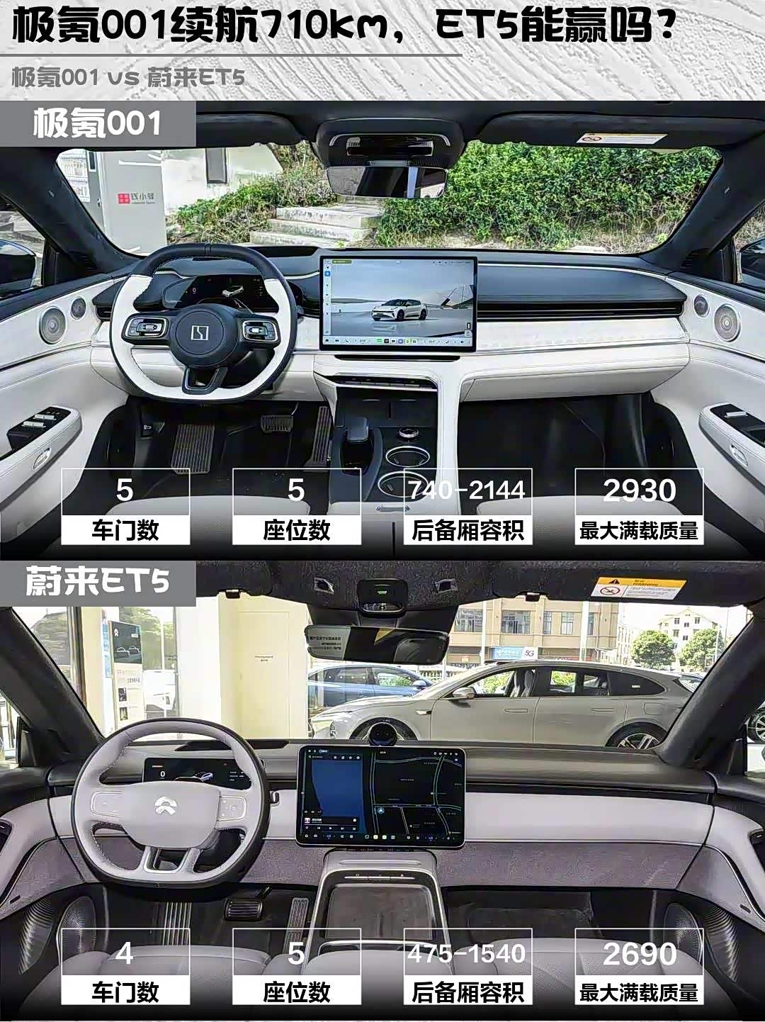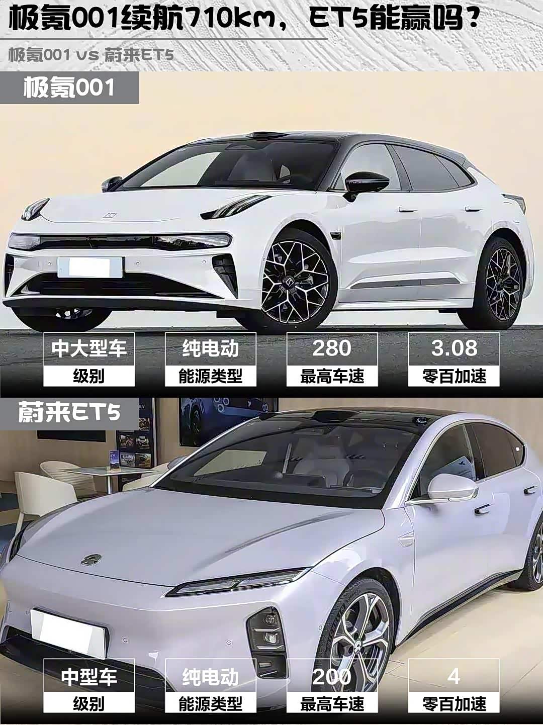 先看硬核数据:极氪001的3.08秒破百直接碾压ET5的4秒,这925匹马力真不是开玩笑的💨。不过ET5的740km CLTC续航小胜极氪001的710km,但极氪的900V平台快充10%-80%只要8分钟,比ET5换电还快!