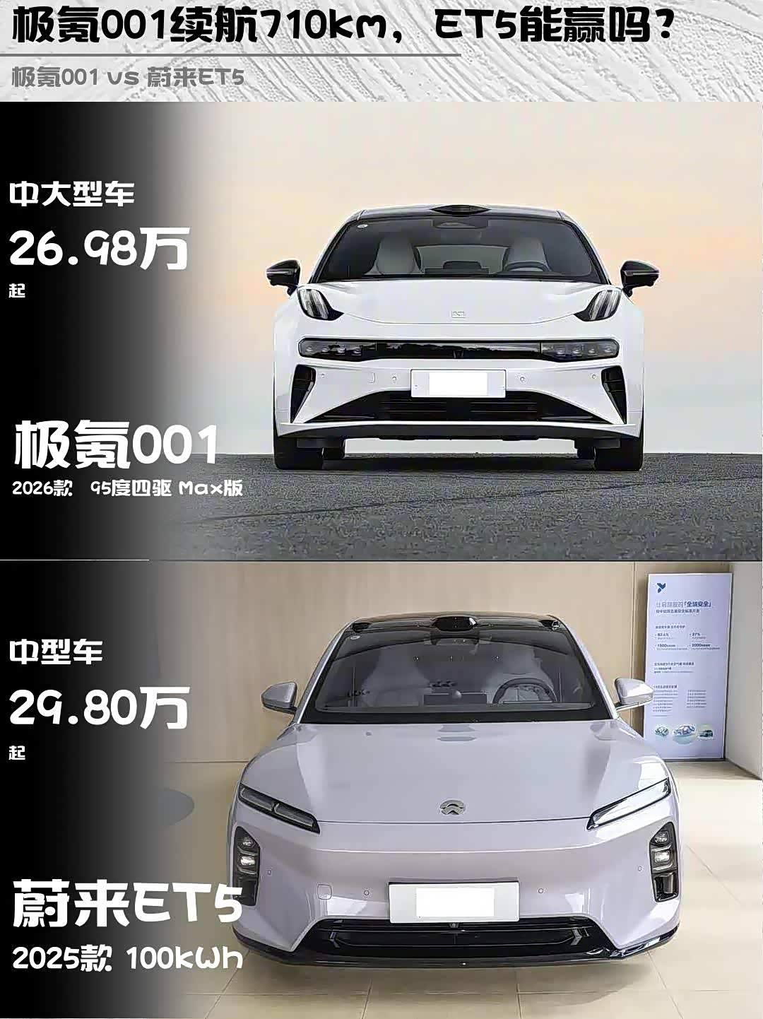 车家号·0浏览·2026-01-19 08:16 · 北京最近深度试驾了2026款 极氪001(参数|询价) 95度四驱Max版和2025款蔚来ET5 100kWh,两款30万级纯电性能猛兽的对决太有意思了!🔥