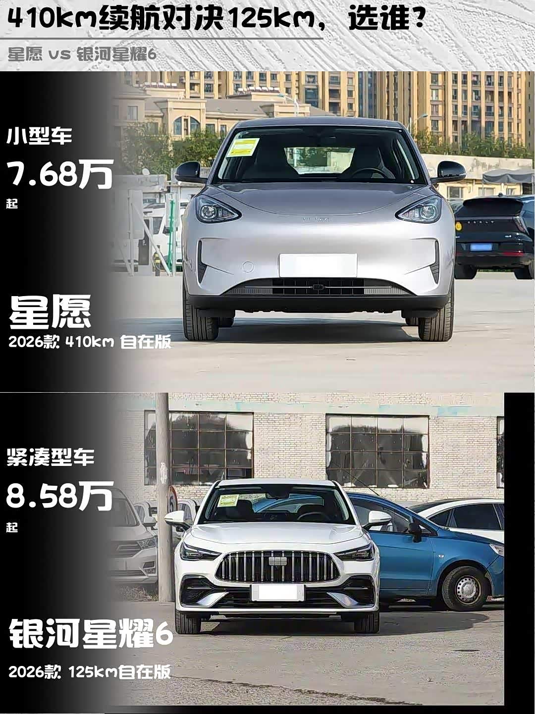 最近在选新能源车的小伙伴看过来!今天给大家深度对比两款热门车型——星愿2026款 410km 自在版和 银河星耀6(参数|询价) 2026款 125km自在版,帮你解决选择困难症!🚗💨