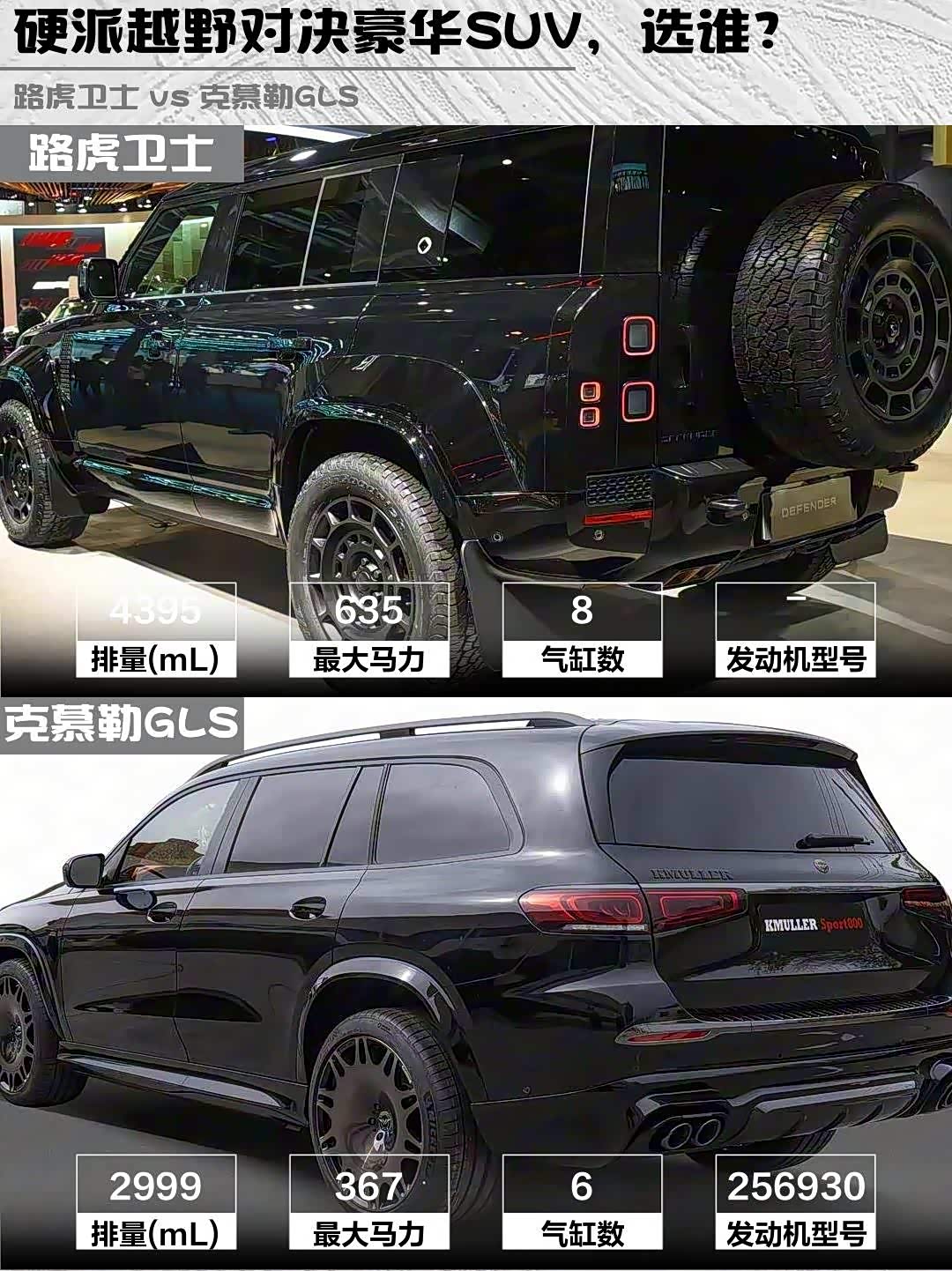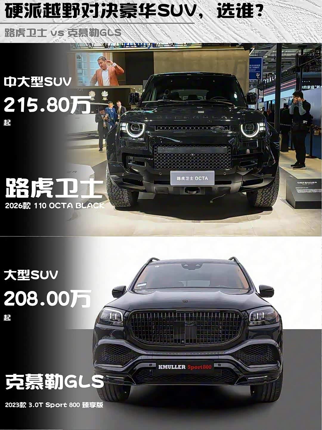 最近深度试驾了两台百万级SUV猛兽——2026款路虎卫士110 OCTA BLACK和2023款 克慕勒GLS(参数|询价) 3.0T Sport 800 臻享版,这两台车简直就是西装暴徒VS荒野战神的对决!🔥