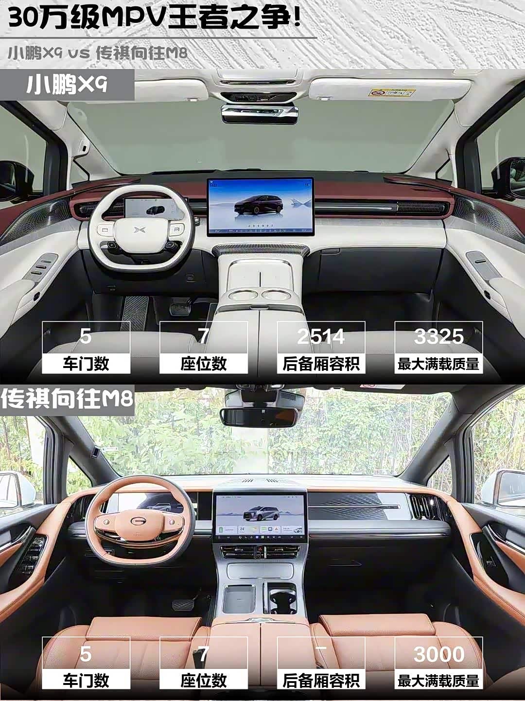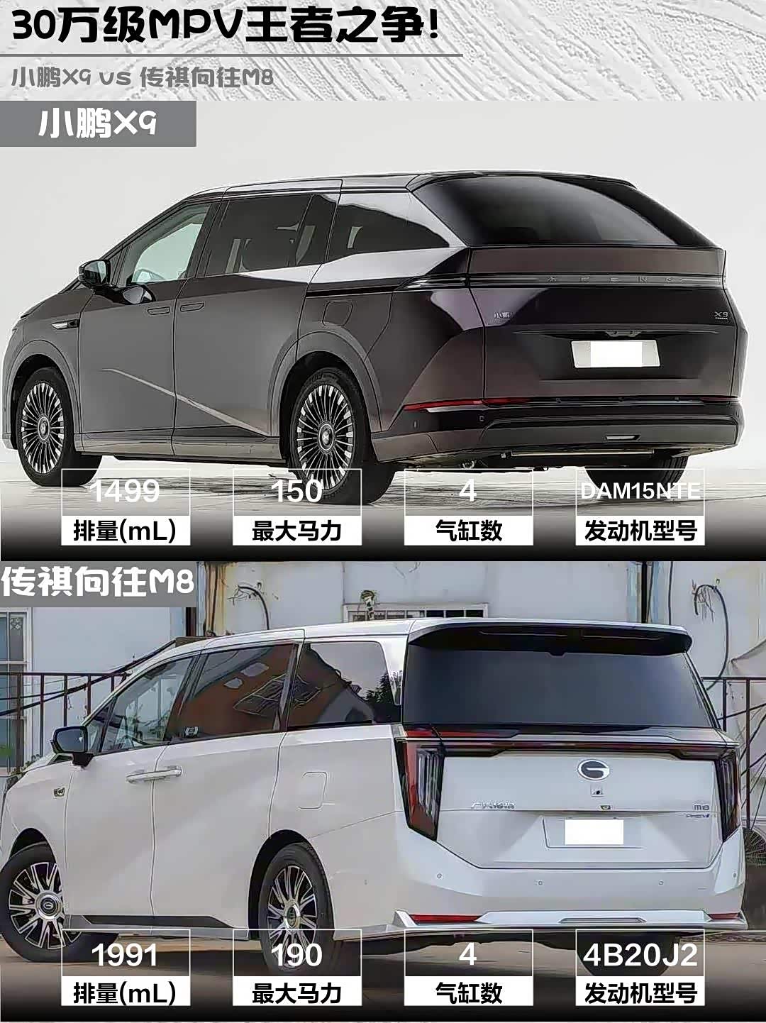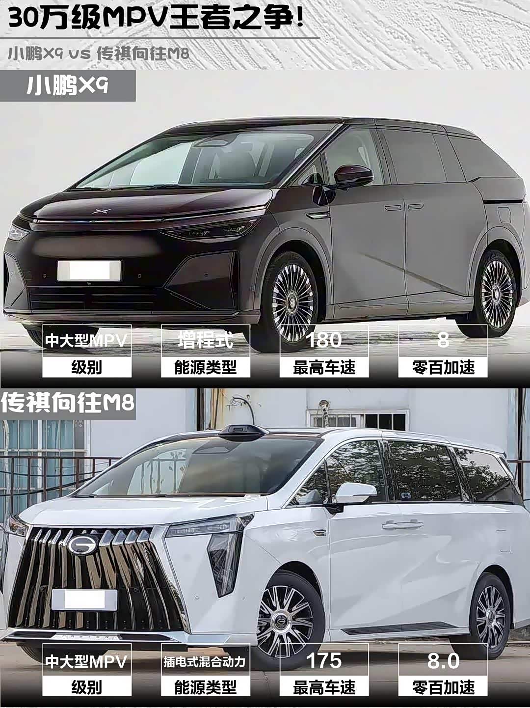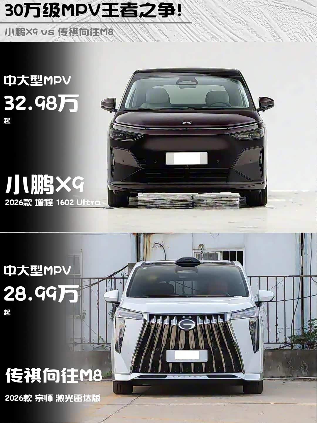 最近在选家用MPV的朋友看过来!今天深度对比两款热门车型——小鹏X9 2026款增程1602 Ultra和 传祺向往M8(参数|询价) 2026款宗师激光雷达版,帮你理清思路✨